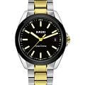 Мужские кварцевые часы Rado HyperChrome — это современное воплощение точности и мастерства материалов. Корпус диаметром 41,5 мм и толщиной 11,7 мм выполнен из полированной и матовой нержавеющей стали. БезельБезельВнешний ободок, закрепляющий стекло. В спортивных часах так называется поворотное кольцо с делениями на циферблате, выполняет роль таймера – замеряет отрезки времени на шкале. Неподвижный безель – элемент декора. Однонаправленно вращающийся безель на дайверских часах позволяет фиксировать моменты погружения и выныривания на поверхность. изготовлен из высокотехнологичной керамикиВысокотехнологичная керамикаИнновационный запатентованный Rado материал с гладкой или матовой поверхностью. Керамика за счёт кристаллической структуры обладает повышенной устойчивостью от возникновения царапин. Материал способен принимать температуру тела человека, обеспечивая невероятный комфорт при ношении. чёрного цвета, придающей часам прочность и изысканность. Циферблат чёрного цвета с лакированным покрытием оформлен индексами и стрелками с люминесцентным покрытиемЛюминесцентное покрытиеПозволяет считывать показания времени в темноте. Производители наносят на стрелки, часовые индексы, безель или поверхность циферблата светонакопительный состав, дающий холодное свечение. Super-Luminova®. Особенность подсветки — зелёное свечение метки 12 часов и минутной стрелки, и синее — остальных индексов и часовой стрелки, что обеспечивает интуитивное считывание времени в темноте. Циферблат защищён выпуклым сапфировым стекломСапфировое стеклоПрочный и надёжный материал из кристалла сапфира синтетического происхождения, характеризующийся особой твёрдостью и устойчивостью к царапинам и повреждениям. с антибликовым покрытиемАнтибликовое покрытиеСлой оксида металла в 0,13-0,3 микрон, благодаря которому стекло часов не бликует и не отражает свет. Антибликовое покрытие уменьшает отражение света в 10 раз, обеспечивая отличную читаемость показателей циферблата. на внутренней стороне. Механизм — кварцевый. Окошко даты расположено в положении 3 часов. Часы оснащены трёхрядным стальным браслетом с центральными звеньями, покрытыми PVD-покрытиемPVDУльтратонкое покрытие наносится в технике вакуумного напыления, сочетает в себе нитрид титана особой прочности со слоем золота или оксида хрома. Несёт в себе декоративную или защитную функцию. жёлтого золота, и трёхсекционной застёжкой с системой быстрой регулировки. Водонепроницаемость 150 м позволяет использовать часы для плавания и повседневного ношения. Идеальный выбор для тех, кто ценит инновации, точность и смелый дизайн.