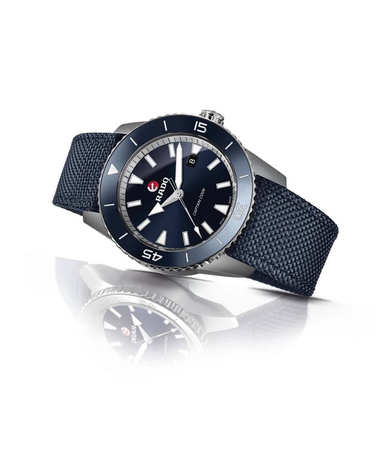 Мужские механические швейцарские часы Rado Captain Cook Automatic R32501206 из коллекции Captain Cook станут превосходным дополнением к образу солидного и успешного человека. Премиальная модель обладает винтажным характером, синий циферблат обращает наше внимание на оригинальные стрелки в виде меча и стрелы. Часы обладают высокими показателями водонепроницаемости - сохранение герметичности до 20 бар, что стало возможным благодаря задней крышке и заводной головке с винтовыми фиксаторами. Автоподзавод. Швейцарский калибр ETA C07.611 с 80-часовым резервом хода. Антибликовая обработка сапфирового стекла. Корпус из титана, безельБезельВнешний ободок, закрепляющий стекло. В спортивных часах так называется поворотное кольцо с делениями на циферблате, выполняет роль таймера – замеряет отрезки времени на шкале. Неподвижный безель – элемент декора. Однонаправленно вращающийся безель на дайверских часах позволяет фиксировать моменты погружения и выныривания на поверхность. из высокотехнологичной керамикиВысокотехнологичная керамикаИнновационный запатентованный Rado материал с гладкой или матовой поверхностью. Керамика за счёт кристаллической структуры обладает повышенной устойчивостью от возникновения царапин. Материал способен принимать температуру тела человека, обеспечивая невероятный комфорт при ношении.. Отображение числа. Диаметр корпуса: 45 мм. Производство и сборка: Швейцария.