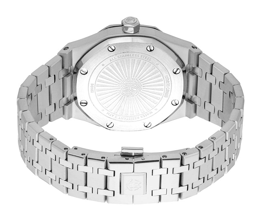 ROBERTO CAVALLI Uomo Ottagono RC5G102M0055 — стильные итальянские часы сочетающие в себе элегантность и современный функционал. Корпус диаметром 42 мм выполнен из нержавеющей стали, толщина корпуса составляет 12 мм, что придает модели выразительный внешний вид и надежную защиту от внешних воздействий. Циферблат, искусно оформленный фирменными элементами Roberto Cavalli, притягивает взгляд и подчеркивает ваш безупречный вкус.
