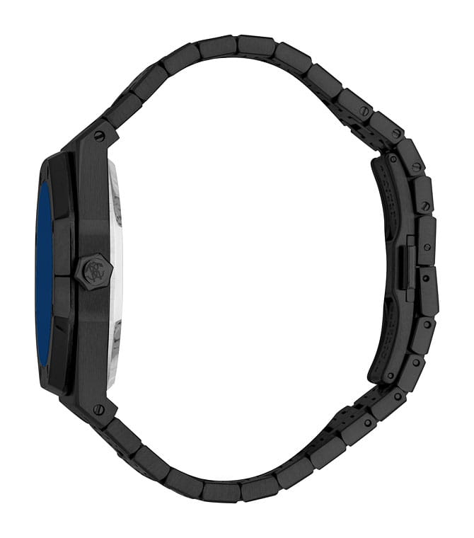 ROBERTO CAVALLI Uomo Ottagono RC5G102M0075 — стильные итальянские часы сочетающие в себе элегантность и современный функционал. Корпус диаметром 42 мм выполнен из нержавеющей стали с PVD-покрытиемPVDУльтратонкое покрытие наносится в технике вакуумного напыления, сочетает в себе нитрид титана особой прочности со слоем золота или оксида хрома. Несёт в себе декоративную или защитную функцию., толщина корпуса составляет 12 мм, что придает модели выразительный внешний вид и надежную защиту от внешних воздействий. Циферблат, искусно оформленный фирменными элементами Roberto Cavalli, притягивает взгляд и подчеркивает ваш безупречный вкус. Часы оснащены кварцевым механизмом, также обладают функцией отображения даты, что делает их удобными для ежедневного использования. Минеральное стеклоМинеральное стеклоМинеральное стекло представляет собой искусственно выращенный минерал кварца. Такое стекло отличается особой устойчивостью к повреждениям и царапинам. Уступает по некоторым качествам сапфировому стеклу. защищает часы от царапин. Водозащита 30 метров позволит защитить корпус от случайных брызг или капель дождя. Стальной браслет на застёжке-бабочке с кнопкамиЗастёжка "бабочка"Такой вид застёжки дополняется предохранителями, помогающими избежать случайного раскрытия браслета. Обладают изящным исполнением. обеспечивает комфортное ношение. Стрелки и метки с люминесцентным покрытиемЛюминесцентное покрытиеПозволяет считывать показания времени в темноте. Производители наносят на стрелки, часовые индексы, безель или поверхность циферблата светонакопительный состав, дающий холодное свечение. обеспечивают отличную читаемость в любое время суток.
