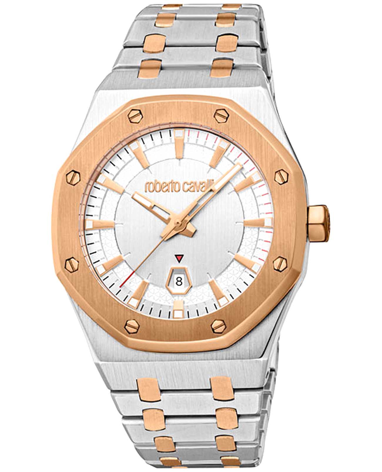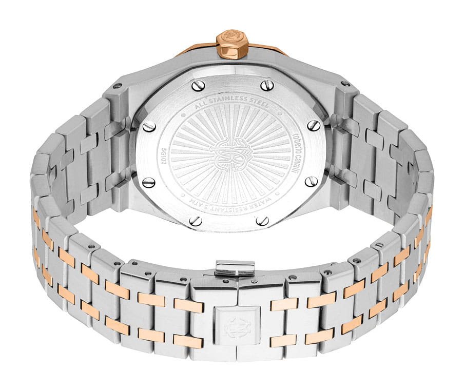 ROBERTO CAVALLI Uomo Ottagono RC5G102M0085 — стильные итальянские часы сочетающие в себе элегантность и современный функционал. Корпус диаметром 42 мм выполнен из нержавеющей стали, толщина корпуса составляет 12 мм, что придает модели выразительный внешний вид и надежную защиту от внешних воздействий. Циферблат, искусно оформленный фирменными элементами Roberto Cavalli, притягивает взгляд и подчеркивает ваш безупречный вкус.