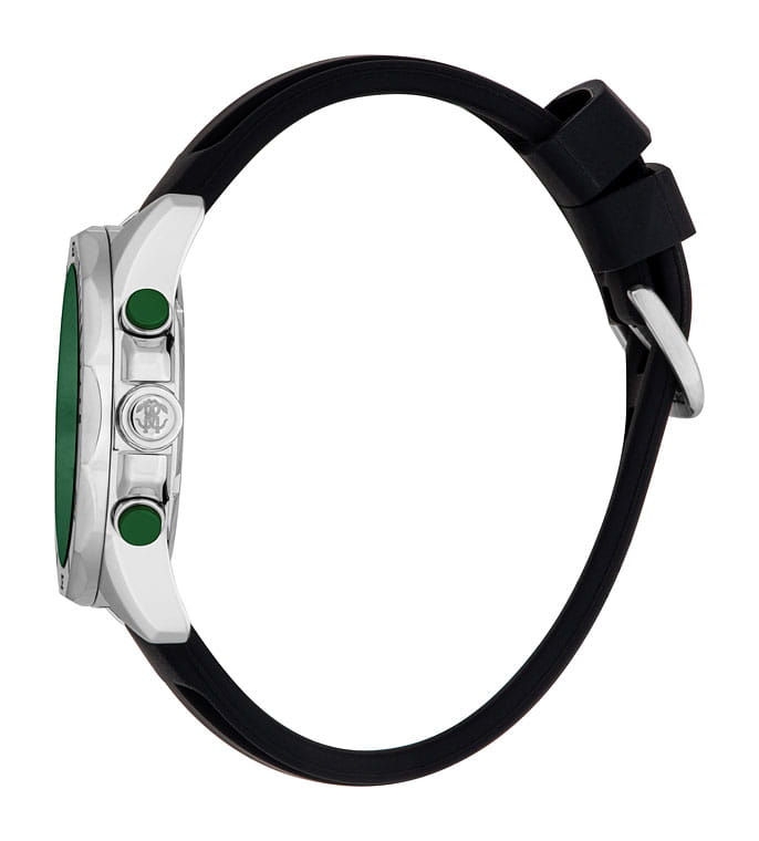 ROBERTO CAVALLI Uomo Sport III RC5G109P0015 — стильные итальянские часы-хронографХронографФункция позволяет измерять отрезки времени с особой точностью: часы, минуты, секунды. Верным признаком хронографа является наличие на циферблате 3 дополнительных окошек-счётчиков. сочетающие в себе элегантность и современный функционал. Корпус диаметром 42 мм выполнен из нержавеющей стали, толщина корпуса составляет 9 мм, что придает модели выразительный внешний вид и надежную защиту от внешних воздействий. Циферблат, искусно оформленный фирменными элементами Roberto Cavalli, притягивает взгляд и подчеркивает ваш безупречный вкус. Часы оснащены кварцевым механизмом, также обладают функцией отображения даты, что делает их удобными для ежедневного использования. Минеральное стеклоМинеральное стеклоМинеральное стекло представляет собой искусственно выращенный минерал кварца. Такое стекло отличается особой устойчивостью к повреждениям и царапинам. Уступает по некоторым качествам сапфировому стеклу. защищает часы от царапин. Водозащита 100 метров позволит плавать, нырять и заниматься другими водными видами спорта. Силиконовый ремешок на стандартной застёжке обеспечивает комфортное ношение. Стрелки и метки с люминесцентным покрытиемЛюминесцентное покрытиеПозволяет считывать показания времени в темноте. Производители наносят на стрелки, часовые индексы, безель или поверхность циферблата светонакопительный состав, дающий холодное свечение. обеспечивают отличную читаемость в любое время суток.