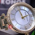 Модель с золотистым PVD-покрытиемPVDУльтратонкое покрытие наносится в технике вакуумного напыления, сочетает в себе нитрид титана особой прочности со слоем золота или оксида хрома. Несёт в себе декоративную или защитную функцию. смотрится оригинально благодаря сочетанию крупного циферблата и тонкого браслета, выполненного в технике «миланское плетение». БезельБезельВнешний ободок, закрепляющий стекло. В спортивных часах так называется поворотное кольцо с делениями на циферблате, выполняет роль таймера – замеряет отрезки времени на шкале. Неподвижный безель – элемент декора. Однонаправленно вращающийся безель на дайверских часах позволяет фиксировать моменты погружения и выныривания на поверхность. декорирован цирконами, их сияние гармонирует с лаконичным узором серединки. Кварцевый механизм обеспечивает высокую точность хода. Прочное минеральное стекло препятствует образованию царапин.
