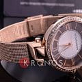 Аксессуар с цветным PVD-покрытиемPVDУльтратонкое покрытие наносится в технике вакуумного напыления, сочетает в себе нитрид титана особой прочности со слоем золота или оксида хрома. Несёт в себе декоративную или защитную функцию. изящно смотрится на запястье. Создаётся гармоничный контраст за счёт объединения крупного циферблата с тонким браслетом миланского плетения. В качестве декорирующего элемента используются цирконы. Кварцевый механизм отличается абсолютной точностью хода. Защищает циферблат от повреждений минеральное стекло повышенной прочности, устойчивое к царапинам.