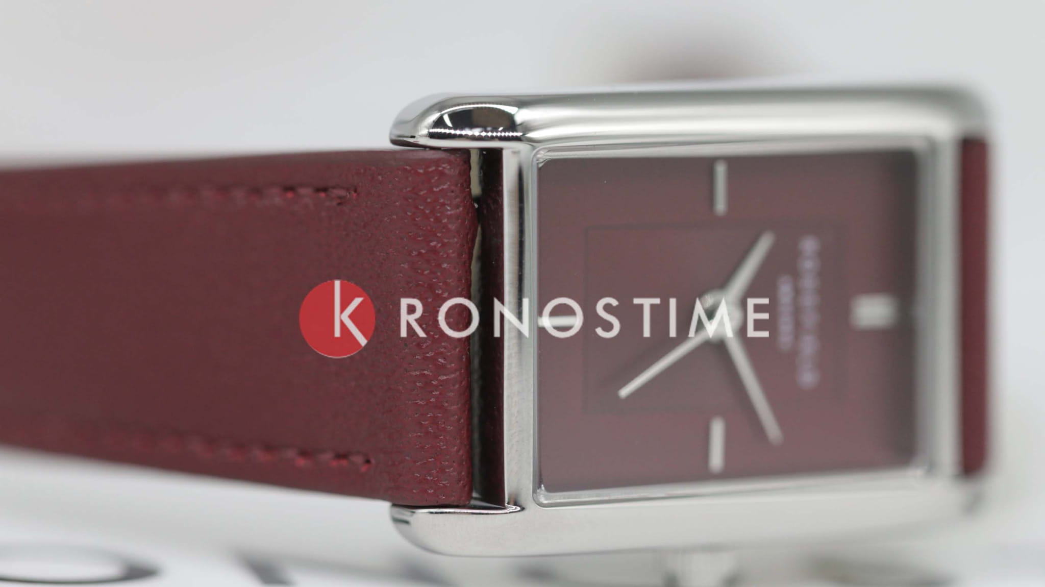 Модель оснащена кварцевым механизмом, который гарантирует точное измерение времени. Бордовый кожаный ремешок шириной 16 мм обеспечивает комфортное ношение и гармонично дополняет общий дизайн.
