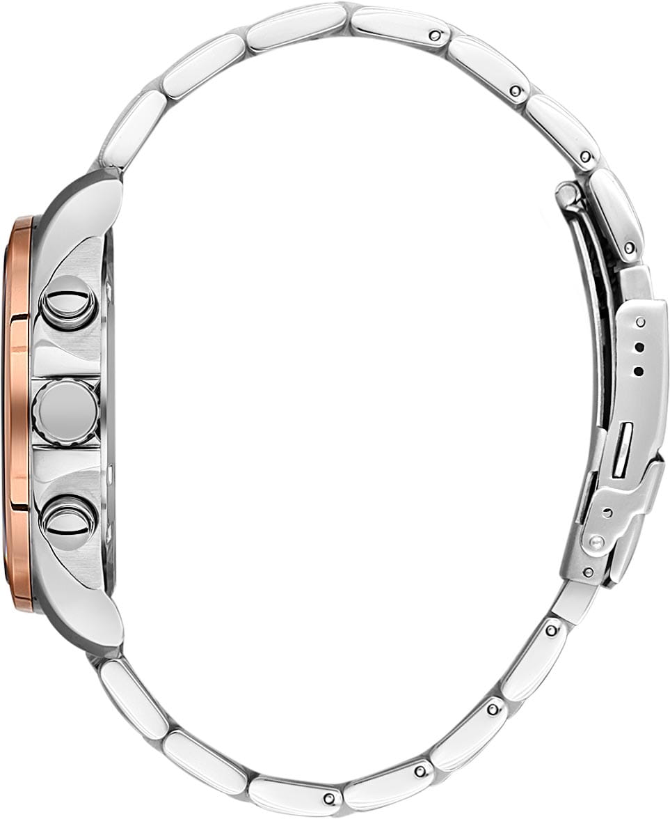 Мужские кварцевые часы Santa Barbara Polo & Racquet Club — это практичный и функциональный аксессуар на каждый день. Корпус диаметром 43 мм выполнен из нержавеющей стали. БезельБезельВнешний ободок, закрепляющий стекло. В спортивных часах так называется поворотное кольцо с делениями на циферблате, выполняет роль таймера – замеряет отрезки времени на шкале. Неподвижный безель – элемент декора. Однонаправленно вращающийся безель на дайверских часах позволяет фиксировать моменты погружения и выныривания на поверхность. с IP-покрытиемIP-покрытиеМетод ионного напыления. Демонстрирует повышенную устойчивость к истиранию, окислению и химическим веществам. Под воздействием высокого давления и температуры около 1500°C молекулы металла надёжно соединяются с частицами корпуса часов. цвета розового золота. Циферблат серебристого цвета выполнен по технологии Sunray («солнечные лучи») и оформлен штрихами и стрелками. Присутствуют отдельные индикаторы дня недели и даты, а также 24-часовой формат времени. Стрелки и метки с люминесцентным покрытиемЛюминесцентное покрытиеПозволяет считывать показания времени в темноте. Производители наносят на стрелки, часовые индексы, безель или поверхность циферблата светонакопительный состав, дающий холодное свечение., обеспечивающим хорошую читаемость в темноте. Циферблат защищён минеральным стекломМинеральное стеклоМинеральное стекло представляет собой искусственно выращенный минерал кварца. Такое стекло отличается особой устойчивостью к повреждениям и царапинам. Уступает по некоторым качествам сапфировому стеклу.. Часы оснащены стальным браслетом с частичным IP-покрытиемIP-покрытиеМетод ионного напыления. Демонстрирует повышенную устойчивость к истиранию, окислению и химическим веществам. Под воздействием высокого давления и температуры около 1500°C молекулы металла надёжно соединяются с частицами корпуса часов. на раскладной застёжкеРаскладная застёжкаТакой тип застёжки используется только на браслетах из металла. Она никогда не раскрывается полностью, происходит разделение на 2 и более частей. Раскладывающая застёжка снизит вероятность потери часов к минимуму.. Водонепроницаемость 50 м позволяет использовать часы в повседневных условиях. Идеальный выбор для тех, кто ценит американское качество и универсальный дизайн.