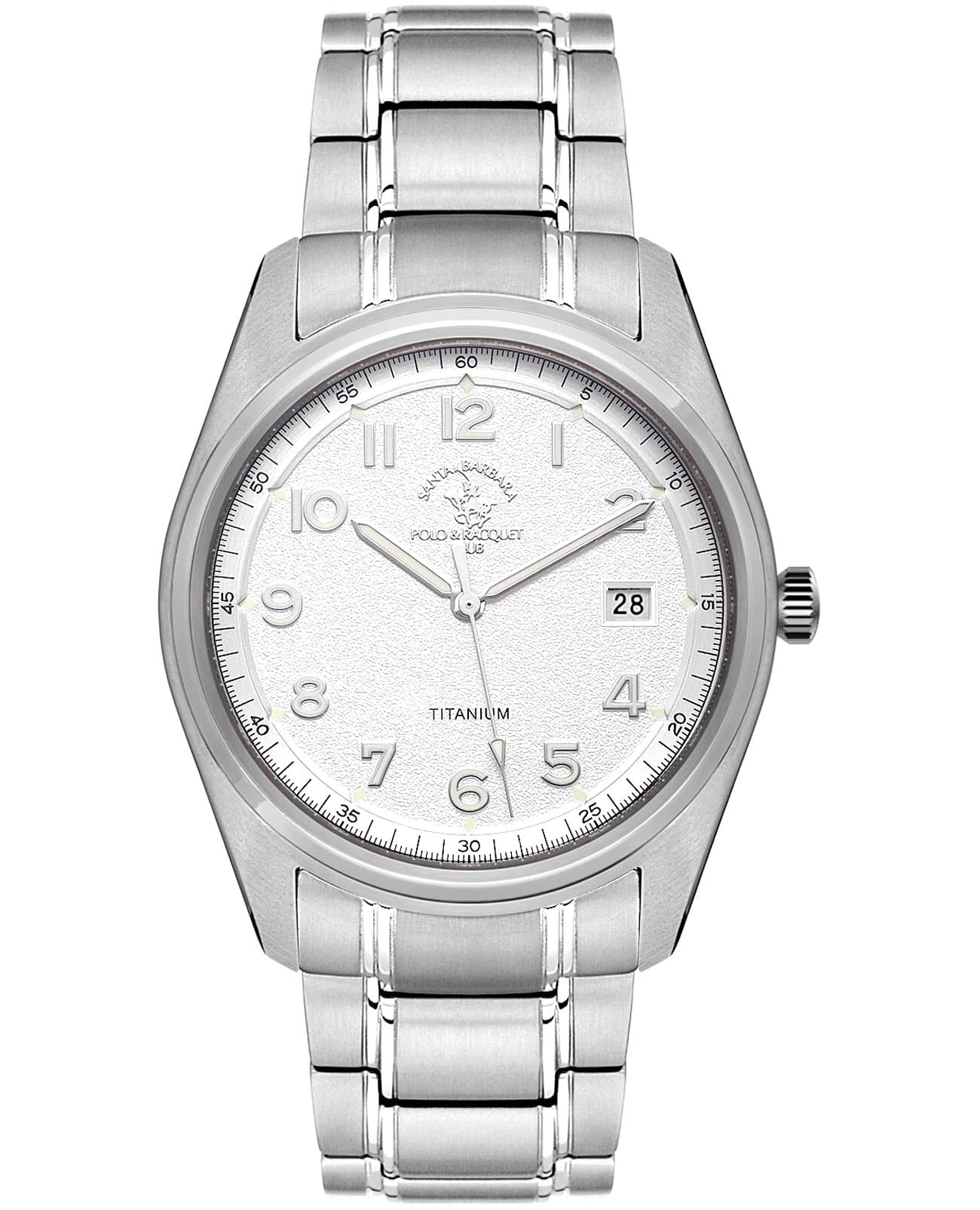 Мужские кварцевые Santa Barbara Polo & Racquet Club SB.4.1010-5 — воплощение элегантности и технического совершенства. Корпус из титана серебристого цвета, диаметром 40 мм, что делает их устойчивыми к внешним воздействиям и придает благородный вид. Стрелки и метки с люминесцентным покрытиемЛюминесцентное покрытиеПозволяет считывать показания времени в темноте. Производители наносят на стрелки, часовые индексы, безель или поверхность циферблата светонакопительный состав, дающий холодное свечение., обеспечивающим хорошую читаемость в темноте. Циферблат защищён минеральным стекломМинеральное стеклоМинеральное стекло представляет собой искусственно выращенный минерал кварца. Такое стекло отличается особой устойчивостью к повреждениям и царапинам. Уступает по некоторым качествам сапфировому стеклу. устойчивое к царапинам и механическим повреждениям. Окошко даты находится в положении 3 часа. Браслет из титана на раскладной застёжкеРаскладная застёжкаТакой тип застёжки используется только на браслетах из металла. Она никогда не раскрывается полностью, происходит разделение на 2 и более частей. Раскладывающая застёжка снизит вероятность потери часов к минимуму. обеспечивает комфортное и безопасное ношение. Водонепроницаемость 50 метров позволит защитить корпус от случайных брызг или капель дождя. Идеальный выбор для тех, кто ценит элегантный дизайн и качество.