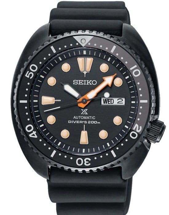 Японский механизм с автоподзаводом SEIKO, калибр 4R36. • Запас хода 41 часы, частота колебаний баланса 21 600 пк/час, 24 камня. • Остановка секундной стрелки, возможность ручного или автоматического подзавода. • Центральные часовая, минутная и секундная стрелки. • Индикация даты и дня недели в двойной апертуре на «3 часах». • Корпус выполнен из нержавеющей стали 316L с PVD-покрытием отдельных компонентов. • Диаметр корпуса 45 мм. • Безель с контрастной хорошо заметной разметкой вращается щелчками только в направлении «против часовой стрелки». • Закаленное минеральное стекло Hardlex Glass совмещает стойкостью к появлению царапин и устойчивость к ударному воздействию и перепадам давления. • Циферблат с большими накладными метками. • Люминесцентный состав LumiBrite на стрелках и разметке циферблата. • Задняя крышка с гравировкой имеет винтовое соединение с корпусом. • Заводная коронка с винтовой фиксацией. • Водостойкость 200 метров (20 АТМ).