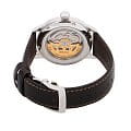 Циферблат привлекает лаконичным узором, крупная индикация времени обеспечивает идеальную читаемость данных. На позиции 9 часов размещено круглое окошко, позволяющее прикоснуться к миру часового искусства. Это часы с автоподзаводом, работа японского автоматического механизма Seiko 4R38 просматривается сквозь завинчивающуюся прозрачную заднюю крышку. Запас хода – 40 часов, функция «stop-second» позволяет остановить часовой механизм для настройки времени с точностью до секунды. Ремешок выполнен из натуральной кожи. Циферблат защищён ультрапрочным минеральным стеклом Hardlex. Водостойкость – 50 метров. Диаметр корпуса: 40,5 мм.