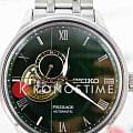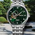 Модель Seiko SSA463J1 из коллекции Presage Japanese Garden — это элегантные автоматические часы, вдохновлённые эстетикой японских садов и философией дзен. Корпус диаметром 41,8 мм выполнен из нержавеющей стали с комбинированной полировкой и прозрачной задней крышкой. Водозащита составляет 30 метров — оптимально для повседневной носки. Фиксированный стальной безельБезельВнешний ободок, закрепляющий стекло. В спортивных часах так называется поворотное кольцо с делениями на циферблате, выполняет роль таймера – замеряет отрезки времени на шкале. Неподвижный безель – элемент декора. Однонаправленно вращающийся безель на дайверских часах позволяет фиксировать моменты погружения и выныривания на поверхность. подчёркивает гармоничные формы корпуса. Циферблат насыщенного зелёного цвета с тонкой текстурой напоминает волны гравия в японском саду. Открытое окно «open heart» на 9 часах позволяет наблюдать за работой механизма. В верхней части расположен индикатор запаса ходаШагомерШагоме́р или педо́метр — измерительный прибор для подсчёта количества сделанных шагов (или пар шагов) при ходьбе или беге.. Циферблат защищён двойным выпуклым сапфировым стекломСапфировое стеклоПрочный и надёжный материал из кристалла сапфира синтетического происхождения, характеризующийся особой твёрдостью и устойчивостью к царапинам и повреждениям. с внутренним антибликовым покрытиемАнтибликовое покрытиеСлой оксида металла в 0,13-0,3 микрон, благодаря которому стекло часов не бликует и не отражает свет. Антибликовое покрытие уменьшает отражение света в 10 раз, обеспечивая отличную читаемость показателей циферблата., устойчивым к царапинам и бликам. Внутри установлен автоматический калибр Seiko 4R39 с ручным подзаводом, функцией остановки секундной стрелки и запасом хода до 41 часа. Браслет выполнен из нержавеющей стали и оснащён удобной застёжкой «бабочка» с кнопкамиЗастёжка "бабочка"Такой вид застёжки дополняется предохранителями, помогающими избежать случайного раскрытия браслета. Обладают изящным исполнением. . Seiko SARY237 — это стильное и сбалансированное решение для ценителей классики с японским характером, где сочетаются глубокий дизайн и надёжная механика.