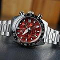 Модель SBGC275G из коллекции Grand Seiko Sport — это высокоточный дайверский хронографХронографФункция позволяет измерять отрезки времени с особой точностью: часы, минуты, секунды. Верным признаком хронографа является наличие на циферблате 3 дополнительных окошек-счётчиков., сочетающий в себе передовые технологии и японскую эстетику. Лимитированная серия. Корпус и браслет выполнены из высокопрочного титана, обеспечивая лёгкость и устойчивость к коррозии. Циферблат с матовой отделкой и крупными метками, покрытыми люминесцентным покрытиемЛюминесцентное покрытиеПозволяет считывать показания времени в темноте. Производители наносят на стрелки, часовые индексы, безель или поверхность циферблата светонакопительный состав, дающий холодное свечение., что гарантирует отличную читаемость в любых условиях. Часы оснащены механизмом Spring Drive 9R96 с запасом хода до 72 часов. Индикатор запаса хода. Центральная стрелка-указатель второго часового поясаВторой часовой поясФункция, позволяющая отображать время двух часовых поясов одновременно. GMTGMTОтображение времени второго часового пояса.Такая функция особенно актуальна для путешественников и бизнесменов,которые общаются с людьми из разных стран,теперь вы всегда будете знать,какой час у вашего партнёра или близкого человека., секундомерСекундомерСекундоме́р — прибор, способный измерять интервалы времени с точностью до долей секунды.. Ретроградный индикатор запаса хода. Диаметр корпуса составляет 44,5 мм, толщина 16.8 мм. Циферблат защищён сапфировым стекломСапфировое стеклоПрочный и надёжный материал из кристалла сапфира синтетического происхождения, характеризующийся особой твёрдостью и устойчивостью к царапинам и повреждениям. с антибликовым покрытиемАнтибликовое покрытиеСлой оксида металла в 0,13-0,3 микрон, благодаря которому стекло часов не бликует и не отражает свет. Антибликовое покрытие уменьшает отражение света в 10 раз, обеспечивая отличную читаемость показателей циферблата. на внутренней стороне. Установлена раскладная застёжка с фиксаторомРаскладная застёжкаТакой тип застёжки используется только на браслетах из металла. Она никогда не раскрывается полностью, происходит разделение на 2 и более частей. Раскладывающая застёжка снизит вероятность потери часов к минимуму. обеспечивает комфортное ношение. БезельБезельВнешний ободок, закрепляющий стекло. В спортивных часах так называется поворотное кольцо с делениями на циферблате, выполняет роль таймера – замеряет отрезки времени на шкале. Неподвижный безель – элемент декора. Однонаправленно вращающийся безель на дайверских часах позволяет фиксировать моменты погружения и выныривания на поверхность. выполнен из титана с PVD-покрытиемPVDУльтратонкое покрытие наносится в технике вакуумного напыления, сочетает в себе нитрид титана особой прочности со слоем золота или оксида хрома. Несёт в себе декоративную или защитную функцию.. Модель обладает водонепроницаемостью до 200 метров идеальным выбором для профессиональных дайверов и ценителей надёжных часов.