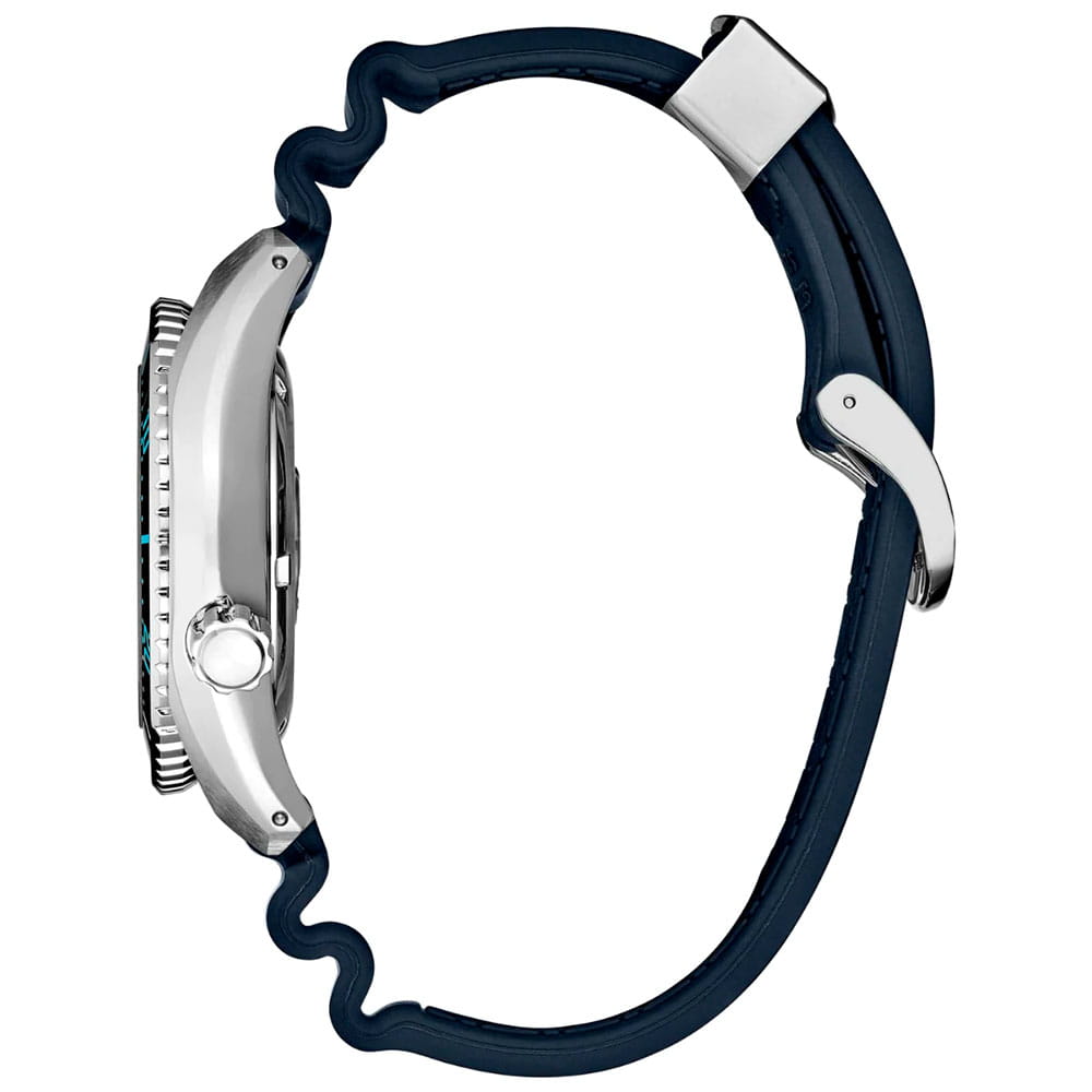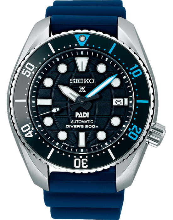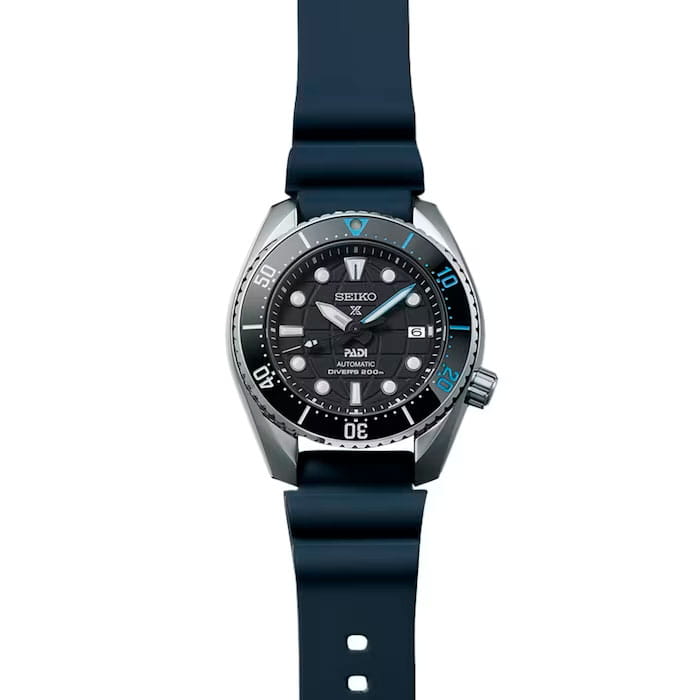 Seiko Prospex SPB325J1 — профессиональные дайверские часы, созданные с учётом строгих стандартов для подводных погружений. Крупный корпус диаметром 45 мм выполнен из нержавеющей стали с сатинированной и полированной обработкой, а массивный односторонний вращающийся безельБезельВнешний ободок, закрепляющий стекло. В спортивных часах так называется поворотное кольцо с делениями на циферблате, выполняет роль таймера – замеряет отрезки времени на шкале. Неподвижный безель – элемент декора. Однонаправленно вращающийся безель на дайверских часах позволяет фиксировать моменты погружения и выныривания на поверхность. с PVD-покрытиемPVDУльтратонкое покрытие наносится в технике вакуумного напыления, сочетает в себе нитрид титана особой прочности со слоем золота или оксида хрома. Несёт в себе декоративную или защитную функцию. с минутной шкалой облегчает контроль времени под водой. Защитную функцию выполняет сапфировое стеклоСапфировое стеклоПрочный и надёжный материал из кристалла сапфира синтетического происхождения, характеризующийся особой твёрдостью и устойчивостью к царапинам и повреждениям. с антибликовым покрытиемАнтибликовое покрытиеСлой оксида металла в 0,13-0,3 микрон, благодаря которому стекло часов не бликует и не отражает свет. Антибликовое покрытие уменьшает отражение света в 10 раз, обеспечивая отличную читаемость показателей циферблата., обеспечивающим высокую читаемость в любых условиях. Внутри установлен автоматический калибр 4R35 с возможностью ручного завода, стоп-секундой и запасом хода около 70 часа. Водозащита 200 м (20 бар) соответствует международному стандарту ISO для дайверских часов. Чёрный циферблат с крупными метками и стрелками покрыт люминесцентным покрытиемЛюминесцентное покрытиеПозволяет считывать показания времени в темноте. Производители наносят на стрелки, часовые индексы, безель или поверхность циферблата светонакопительный состав, дающий холодное свечение., что гарантирует видимость даже в кромешной темноте. Часы комплектуются прочным каучуковым ремешком с классической застёжкой, который устойчив к влаге и морской соли, делая модель надёжным инструментом для настоящего дайвинга.