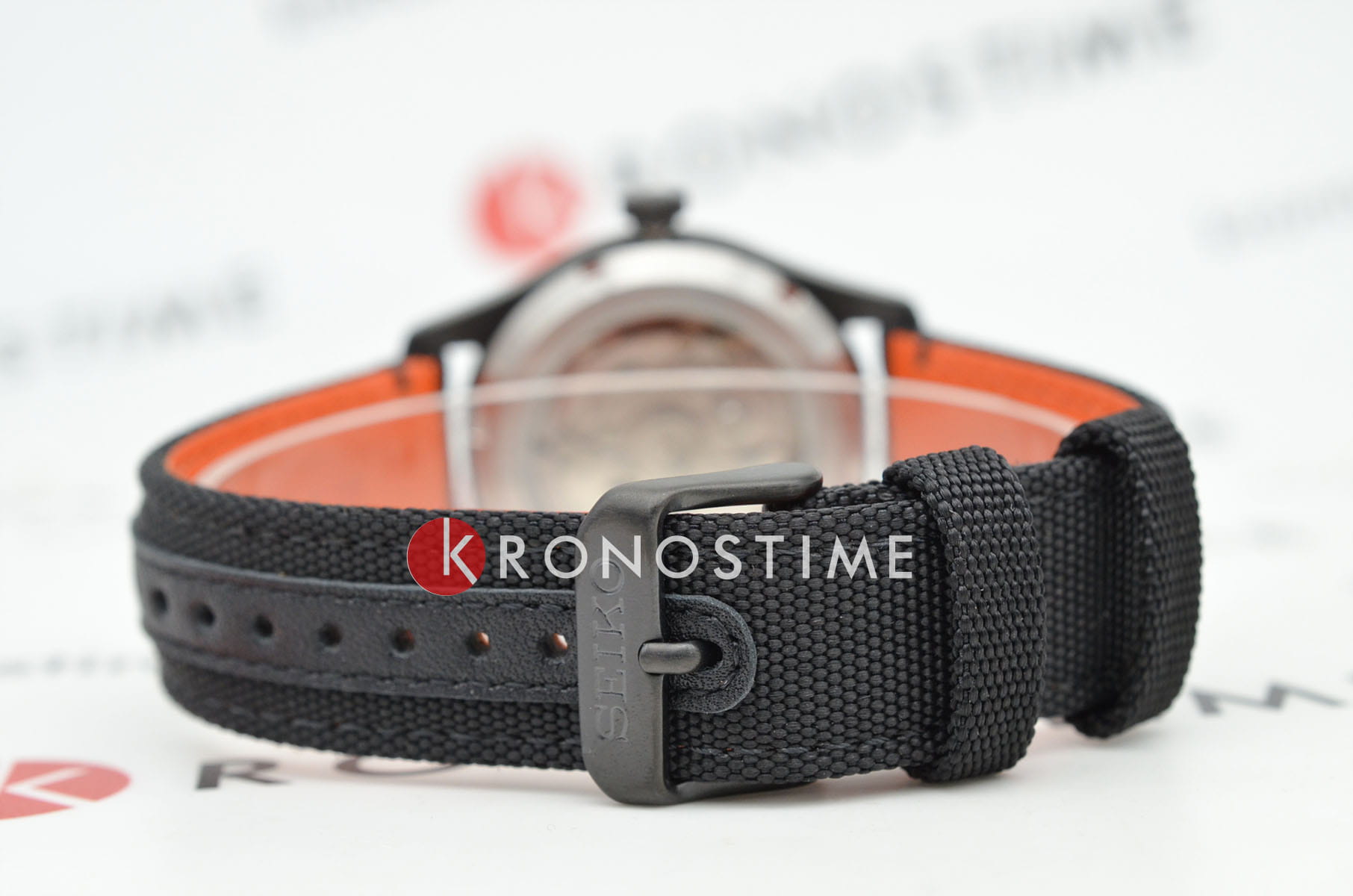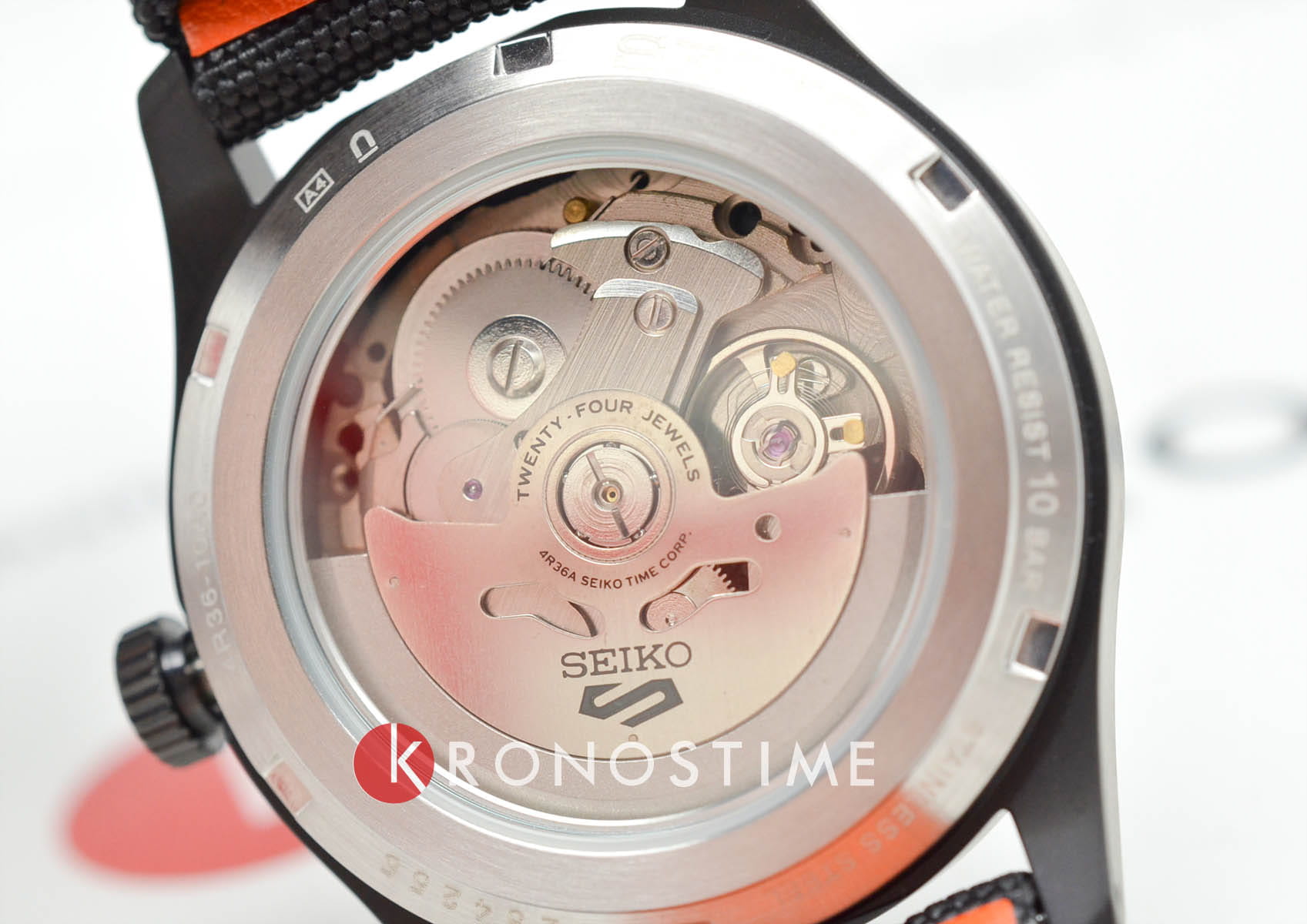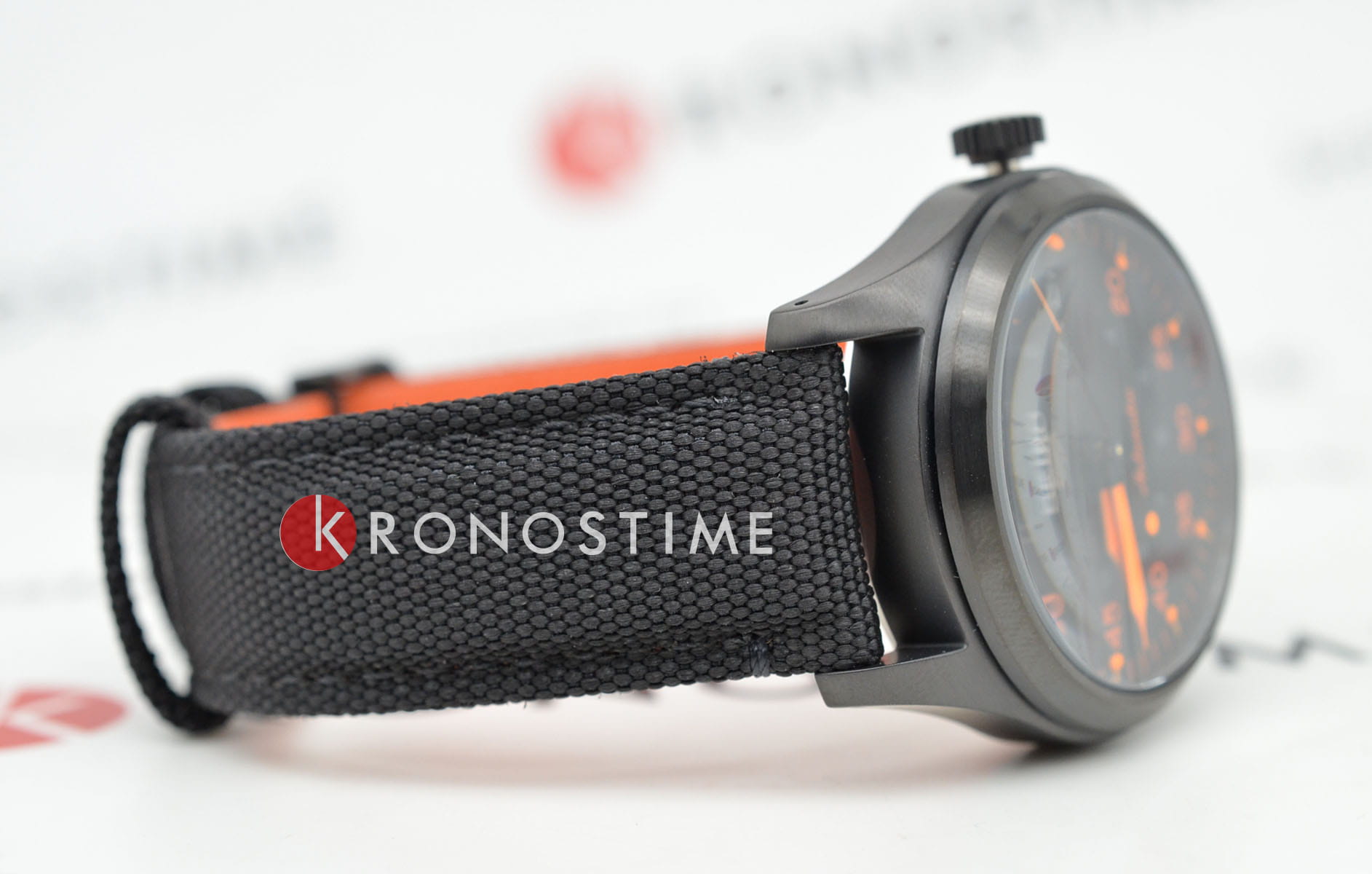 Seiko 5 Sports SRPH33K1 — мужская автоматическая модель из спортивной коллекции Seiko 5, выполненная в стиле авиационных часов. Корпус диаметром 39 мм изготовлен из нержавеющей стали с PVD-покрытиемPVDУльтратонкое покрытие наносится в технике вакуумного напыления, сочетает в себе нитрид титана особой прочности со слоем золота или оксида хрома. Несёт в себе декоративную или защитную функцию. и дополнен текстильным ремешком с классической застёжкой, подчёркивающим универсальность модели. Защитную функцию выполняет минеральное стеклоМинеральное стеклоМинеральное стекло представляет собой искусственно выращенный минерал кварца. Такое стекло отличается особой устойчивостью к повреждениям и царапинам. Уступает по некоторым качествам сапфировому стеклу. Hardlex, устойчивое к механическим повреждениям. В основе лежит надёжный автоматический калибр 4R36 с функциями часов, минут, секунд, даты и дня недели, возможностью ручного завода и стоп-секундой. Водозащита составляет 100 м, что делает модель подходящей для плавания и повседневного использования. Чёрный циферблат с ярко-оранжевыми акцентами оформлен в авиационном стиле: крупные минутные деления по внешней шкале и часовые метки во внутреннем круге. Стрелки и индексы покрыты люминесцентным покрытиемЛюминесцентное покрытиеПозволяет считывать показания времени в темноте. Производители наносят на стрелки, часовые индексы, безель или поверхность циферблата светонакопительный состав, дающий холодное свечение., обеспечивающим отличную читаемость даже в темноте.