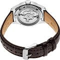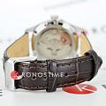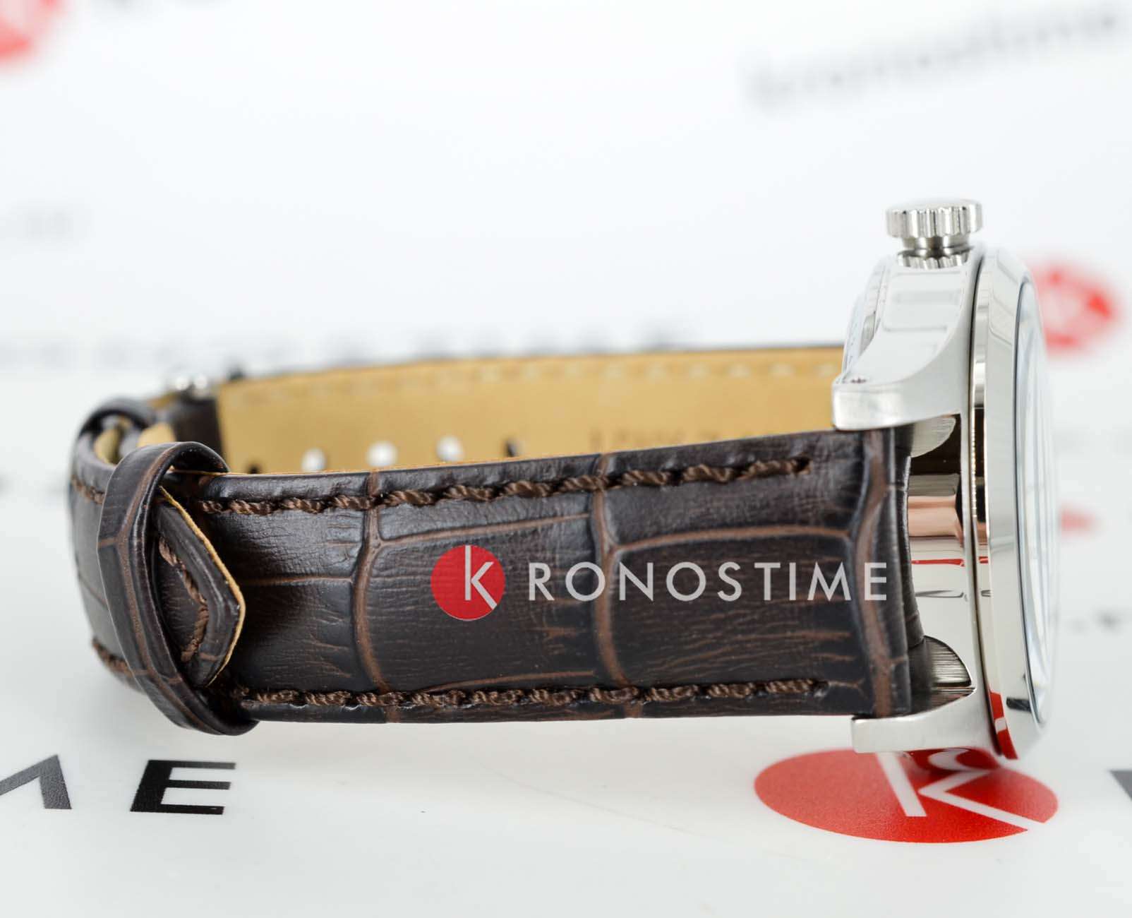 Модель комплектуется коричневым кожаным ремешком с удобной раскладной застёжкойРаскладная застёжкаТакой тип застёжки используется только на браслетах из металла. Она никогда не раскрывается полностью, происходит разделение на 2 и более частей. Раскладывающая застёжка снизит вероятность потери часов к минимуму., подчеркивающей классический стиль модели.