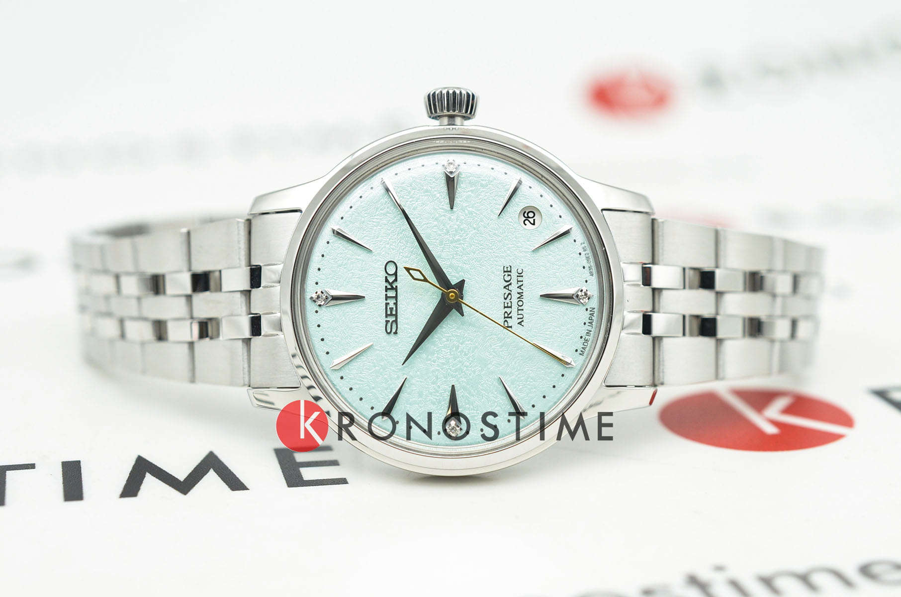 Модель Seiko Presage Cocktail Time SRPL63 вдохновлена свежестью японского коктейля Frozen Sky Diving. Часы отличаются циферблатом с четырьмя метками из драгоценных камней, что придаёт им особую роскошь и изысканность. Корпус диаметром 40 мм изготовлен из нержавеющей стали, а стекло выполнено по технологии Hardlex — это минеральное стеклоМинеральное стеклоМинеральное стекло представляет собой искусственно выращенный минерал кварца. Такое стекло отличается особой устойчивостью к повреждениям и царапинам. Уступает по некоторым качествам сапфировому стеклу. повышенной прочности, устойчивое к мелким механическим повреждениям. Механизм — автоматический калибр 4R35, обеспечивающий надёжную работу часов и запас хода до 41 часа. Функция отображения даты добавляет модели практичности. Часы водонепроницаемы до 5 атмосфер, что соответствует защите от случайных капель дождя. Браслет и застёжка выполнены из стали, оснащены раскладной застёжкойРаскладная застёжкаТакой тип застёжки используется только на браслетах из металла. Она никогда не раскрывается полностью, происходит разделение на 2 и более частей. Раскладывающая застёжка снизит вероятность потери часов к минимуму., обеспечивающей удобство ношения. Дизайн часов дополнен классическим сочетанием материалов и цветов, что делает их универсальным аксессуаром для повседневного и торжественного образа. Модель 2025 года имеет современный, лаконичный внешний вид, сохраняя при этом традиционные элементы часового мастерства Seiko.