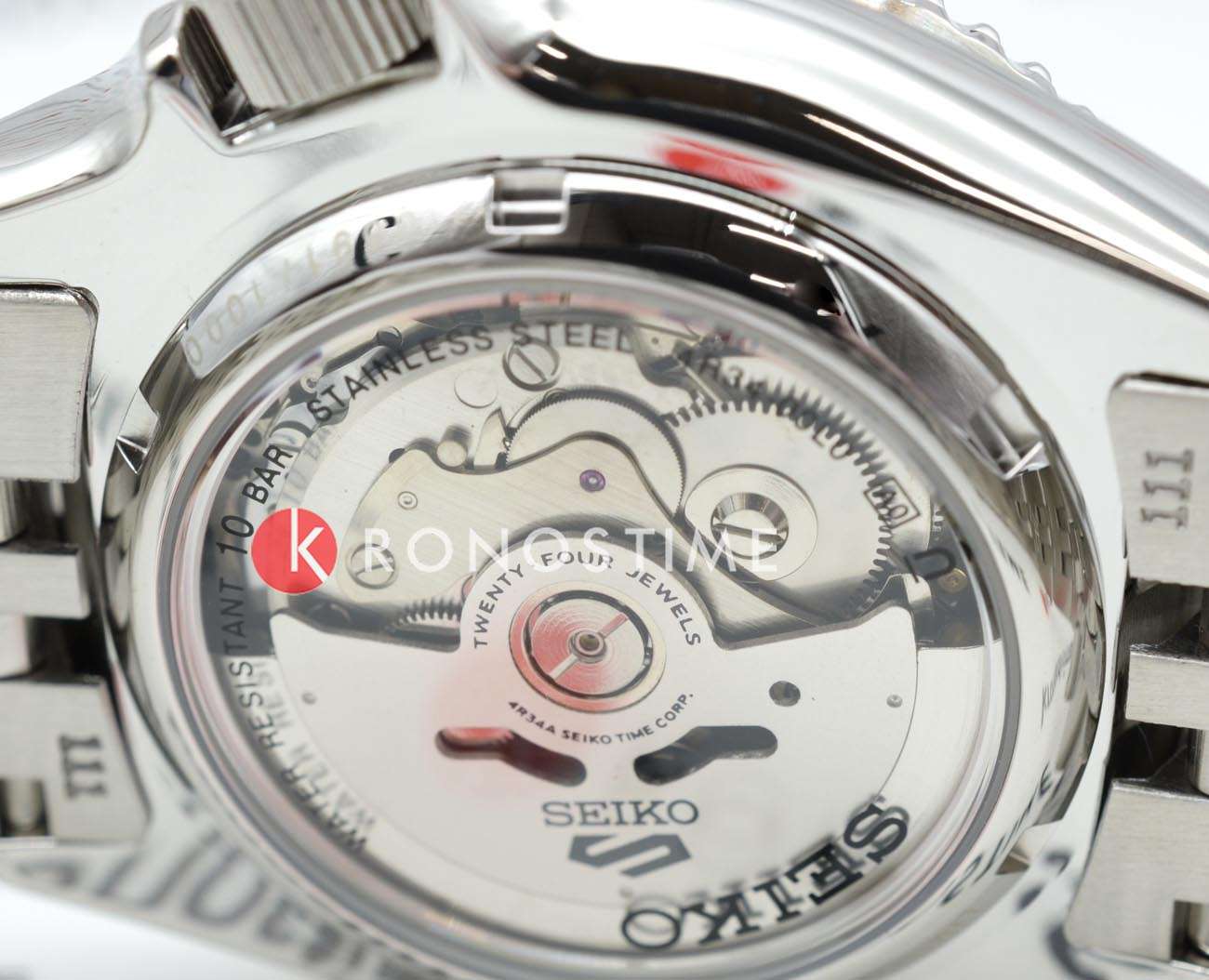 Мужские наручные часы Seiko SSK031K1 из коллекции 5 Sports сочетают в себе стильный дизайн и надежность современных технологий. Модель обладает круглым корпусом диаметром 42,5 мм, изготовленным из нержавеющей стали, что обеспечивает высокую устойчивость к внешним воздействиям. БезельБезельВнешний ободок, закрепляющий стекло. В спортивных часах так называется поворотное кольцо с делениями на циферблате, выполняет роль таймера – замеряет отрезки времени на шкале. Неподвижный безель – элемент декора. Однонаправленно вращающийся безель на дайверских часах позволяет фиксировать моменты погружения и выныривания на поверхность. с PVD-покрытиемPVDУльтратонкое покрытие наносится в технике вакуумного напыления, сочетает в себе нитрид титана особой прочности со слоем золота или оксида хрома. Несёт в себе декоративную или защитную функцию.. Для защиты циферблата используется минеральное стеклоМинеральное стеклоМинеральное стекло представляет собой искусственно выращенный минерал кварца. Такое стекло отличается особой устойчивостью к повреждениям и царапинам. Уступает по некоторым качествам сапфировому стеклу., которое эффективно противостоит царапинам и механическим повреждениям. Часы оснащены автоматическим механизмом с калибром 4R34, поддерживающим автоподзавод и имеющим запас хода около 41 часа. Водонепроницаемость модели достигает 10 атмосфер (100 метров), что позволяет использовать их во время плавания и других водных видов спорта. Стальной браслет на раскладной застёжкеРаскладная застёжкаТакой тип застёжки используется только на браслетах из металла. Она никогда не раскрывается полностью, происходит разделение на 2 и более частей. Раскладывающая застёжка снизит вероятность потери часов к минимуму.. Циферблат оснащен функцией индикации даты, центральной секундной стрелкой и люминесцентным покрытиемЛюминесцентное покрытиеПозволяет считывать показания времени в темноте. Производители наносят на стрелки, часовые индексы, безель или поверхность циферблата светонакопительный состав, дающий холодное свечение. стрелок и маркеров для удобства использования в темное время суток.
