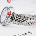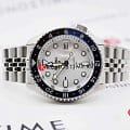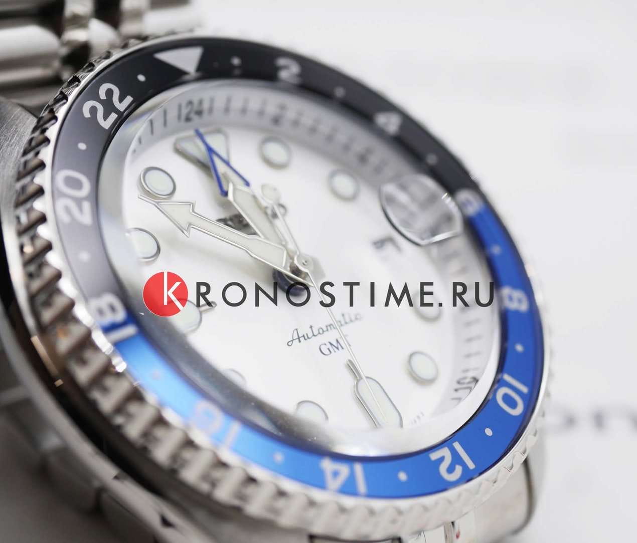 Механические часы Seiko SSK033 из коллекции 5 Sports SKX — это сочетание надёжности, функциональности и стиля. Модель оснащена калибром 4R34 с автоподзаводом и возможностью ручной подзаводки. Механизм имеет 24 драгоценных камня и обеспечивает запас хода до 41 часа. Также реализована функция стоп-секунды для точной установки времени и защита от магнитных полей до 4800 А/м. Второй часовой пояс отображается центральной стрелкой в 24-часовом формате. Циферблат серебристого цвета выполнен по технологии Sunray, имитирующей солнечные лучи. Метки представлены в виде точек и штрихов, а стрелки и индексы дополнены фирменным люминесцентным покрытиемЛюминесцентное покрытиеПозволяет считывать показания времени в темноте. Производители наносят на стрелки, часовые индексы, безель или поверхность циферблата светонакопительный состав, дающий холодное свечение. LumiBrite, обеспечивающим отличную читаемость даже в темноте. Окошко даты оснащено увеличительным стеклом, что делает показания ещё более удобными для восприятия. Часы защищены минеральным стекломМинеральное стеклоМинеральное стекло представляет собой искусственно выращенный минерал кварца. Такое стекло отличается особой устойчивостью к повреждениям и царапинам. Уступает по некоторым качествам сапфировому стеклу. повышенной прочности Hardlex, устойчивым к мелким царапинам и повреждениям. Вращающийся безель с 24-часовой шкалой выполнен в классическом стиле и дополнен рифлёной поверхностью для удобства вращения. Заводная головка имеет защиту и расположена в положении 4 часов, что повышает комфорт при ношении. Корпус диаметром 42,5 мм изготовлен из нержавеющей стали с частичным PVD-покрытиемPVDУльтратонкое покрытие наносится в технике вакуумного напыления, сочетает в себе нитрид титана особой прочности со слоем золота или оксида хрома. Несёт в себе декоративную или защитную функцию., придающим модели благородный внешний вид. Задняя крышка — завинчивающаяся и прозрачная, что позволяет рассмотреть работу механизма и подчёркивает внимание к деталям внутренней отделки. Часы водонепроницаемы до 100 метров (), что позволяет использовать их при плавании и других водных активностях. Браслет выполнен из стали и оснащён трёхсгибной раскладной застёжкойРаскладная застёжкаТакой тип застёжки используется только на браслетах из металла. Она никогда не раскрывается полностью, происходит разделение на 2 и более частей. Раскладывающая застёжка снизит вероятность потери часов к минимуму. с системой блокировки, обеспечивающей комфорт и уверенную фиксацию на запястье. Общая длина браслета составляет 205 мм, а ширина — 22 мм, что делает его подходящим для большинства размеров рук. Эти часы станут универсальным аксессуаром для тех, кто ценит сочетание технологичности, прочности и эстетики — идеальный выбор как для повседневного использования, так и для активного образа жизни.