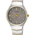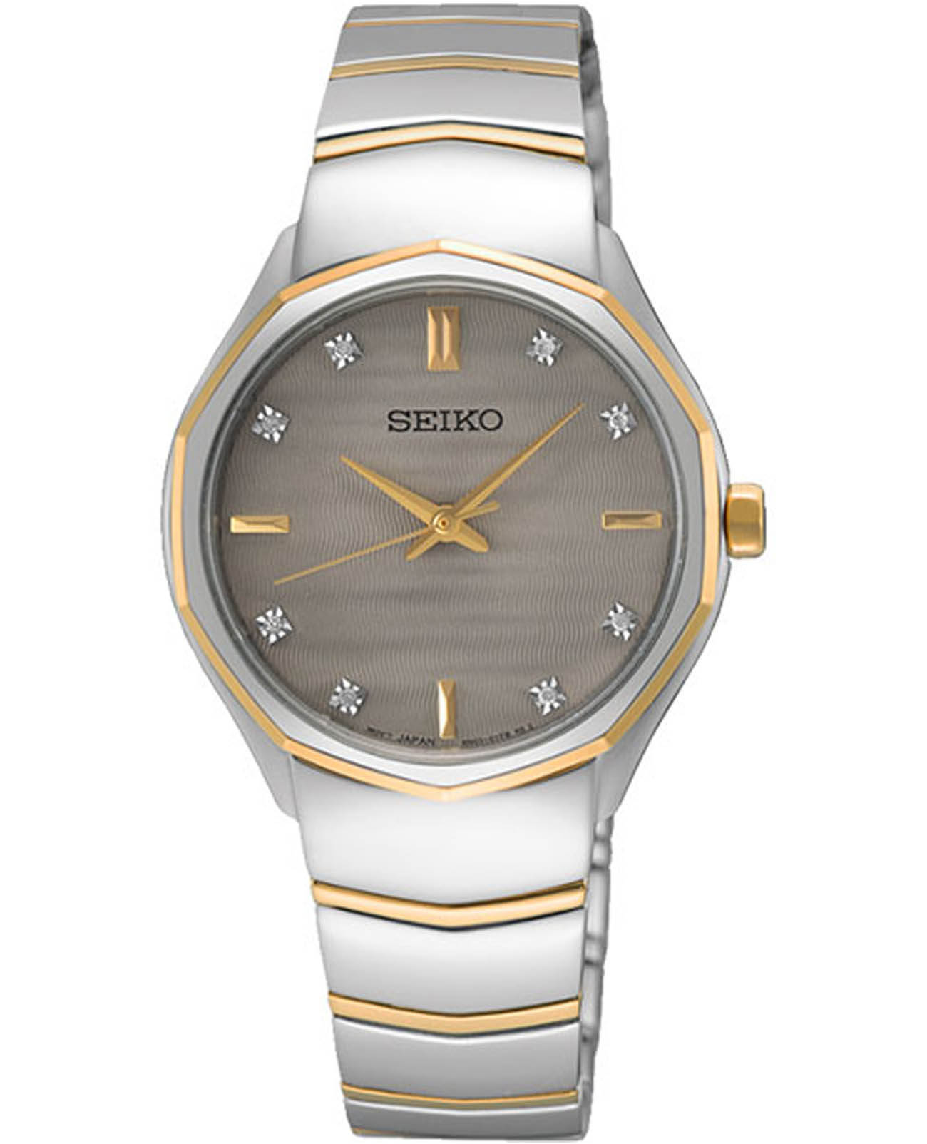 Женские японские часы Seiko Conceptual Series Dress SUR616P1 c кварцевым механизмом с высокой точностью. Сапфировое стеклоСапфировое стеклоПрочный и надёжный материал из кристалла сапфира синтетического происхождения, характеризующийся особой твёрдостью и устойчивостью к царапинам и повреждениям. с антибликовым покрытиемАнтибликовое покрытиеСлой оксида металла в 0,13-0,3 микрон, благодаря которому стекло часов не бликует и не отражает свет. Антибликовое покрытие уменьшает отражение света в 10 раз, обеспечивая отличную читаемость показателей циферблата. , устойчивое к появлению царапин, обладающее высокой прозрачностью. Водозащита до 5 ATM позволяет не снимать часы при дожде, мытье рук или случайных брызгах. Корпус и браслет изготовлены из нержавеющей стали с PVDPVDУльтратонкое покрытие наносится в технике вакуумного напыления, сочетает в себе нитрид титана особой прочности со слоем золота или оксида хрома. Несёт в себе декоративную или защитную функцию. покрытием. Браслет с раскладной застёжкойРаскладная застёжкаТакой тип застёжки используется только на браслетах из металла. Она никогда не раскрывается полностью, происходит разделение на 2 и более частей. Раскладывающая застёжка снизит вероятность потери часов к минимуму. с фиксатором. Серый циферблат украшен бриллиантами. Seiko — это гармония изящного дизайна и технологичной надёжности, компактный и стильный выбор для повседневной классики.