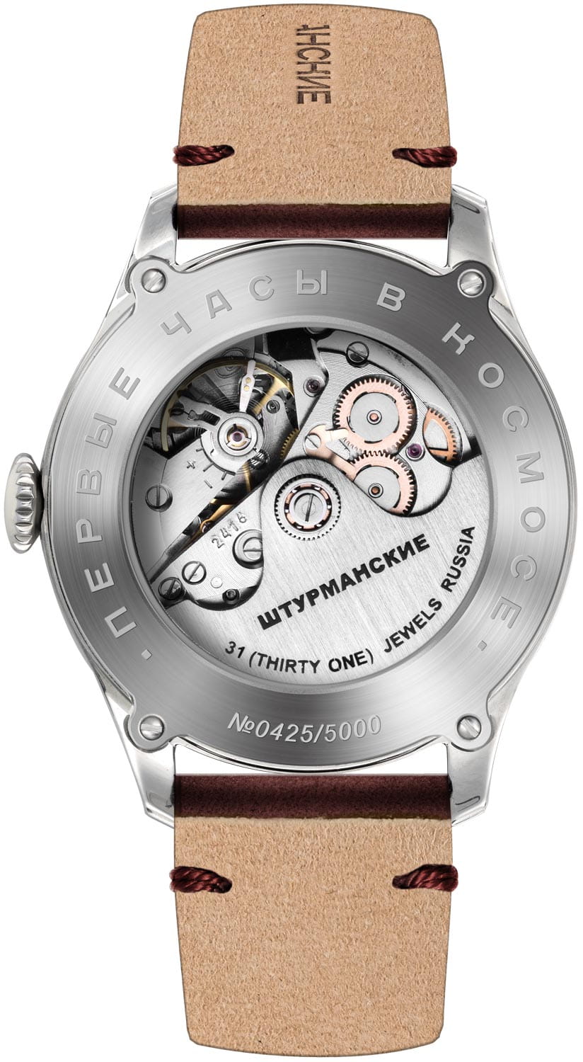 Лимитированные мужские российские механические часы коллекции Гагарин Наследие 42 Штурманские 2416/3905148, механический механизм (автоматический калибр) с высокой точностью. Лимитированная серия - 5000 экземпляров. Класс водозащиты: 50 метров, позволит защитить корпус от случайных брызг или капель дождя. Стрелки и метки с люминесцентным покрытиемЛюминесцентное покрытиеПозволяет считывать показания времени в темноте. Производители наносят на стрелки, часовые индексы, безель или поверхность циферблата светонакопительный состав, дающий холодное свечение.. Корпус часов изготовлен из стали. Коричневый кожаный ремешок со стандартной пряжкой подчеркивает утилитарность и практичность модели, ее настоящий мужской характер. Минеральное стеклоМинеральное стеклоМинеральное стекло представляет собой искусственно выращенный минерал кварца. Такое стекло отличается особой устойчивостью к повреждениям и царапинам. Уступает по некоторым качествам сапфировому стеклу. устойчивое к мелким механическим повреждениям. Прозрачная задняя крышка крепится на 4-х винтах. Работают часы за счет механического калибра Полет 2416.