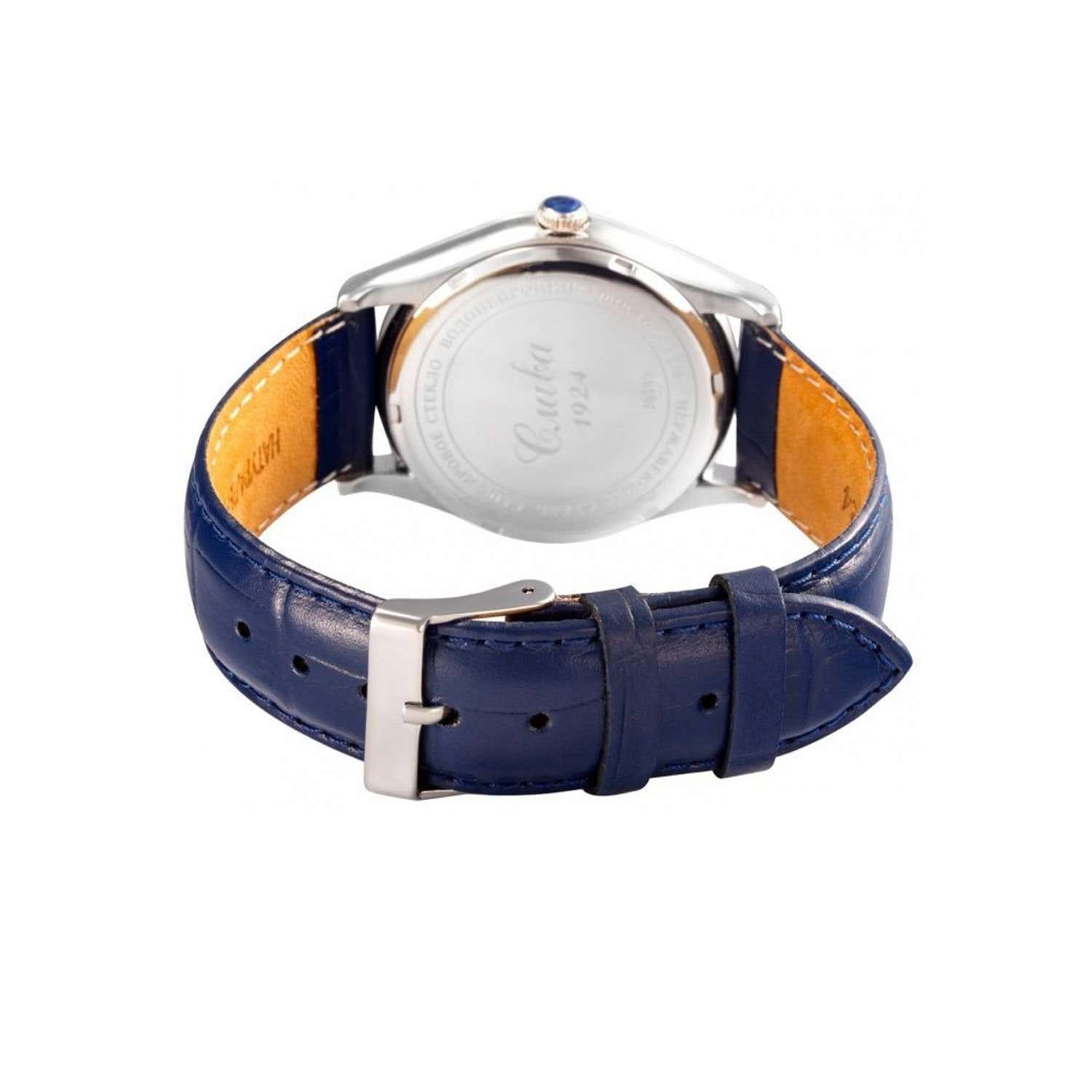 Российские механические наручные часы Слава Сенат 1490903/300-1612, которые станут идеальным аксессуаром для повседневного ношения. Эти часы сочетают в себе элегантность и практичность, предлагая безупречный стиль и надежность. Оснащенные механизмом ST1612 с автоподзаводом, они обеспечивают точность и долговечность. Стальной корпус с сапфировым стекломСапфировое стеклоПрочный и надёжный материал из кристалла сапфира синтетического происхождения, характеризующийся особой твёрдостью и устойчивостью к царапинам и повреждениям. защищает синий циферблат с римскими цифрами. Часы также имеют календарь с окошком даты на 3 часах и водозащиту до 50WR, что делает их надежными в различных условиях. Текстурированный кожаный синий ремешок с классической застежкой завершает этот изысканный образ.