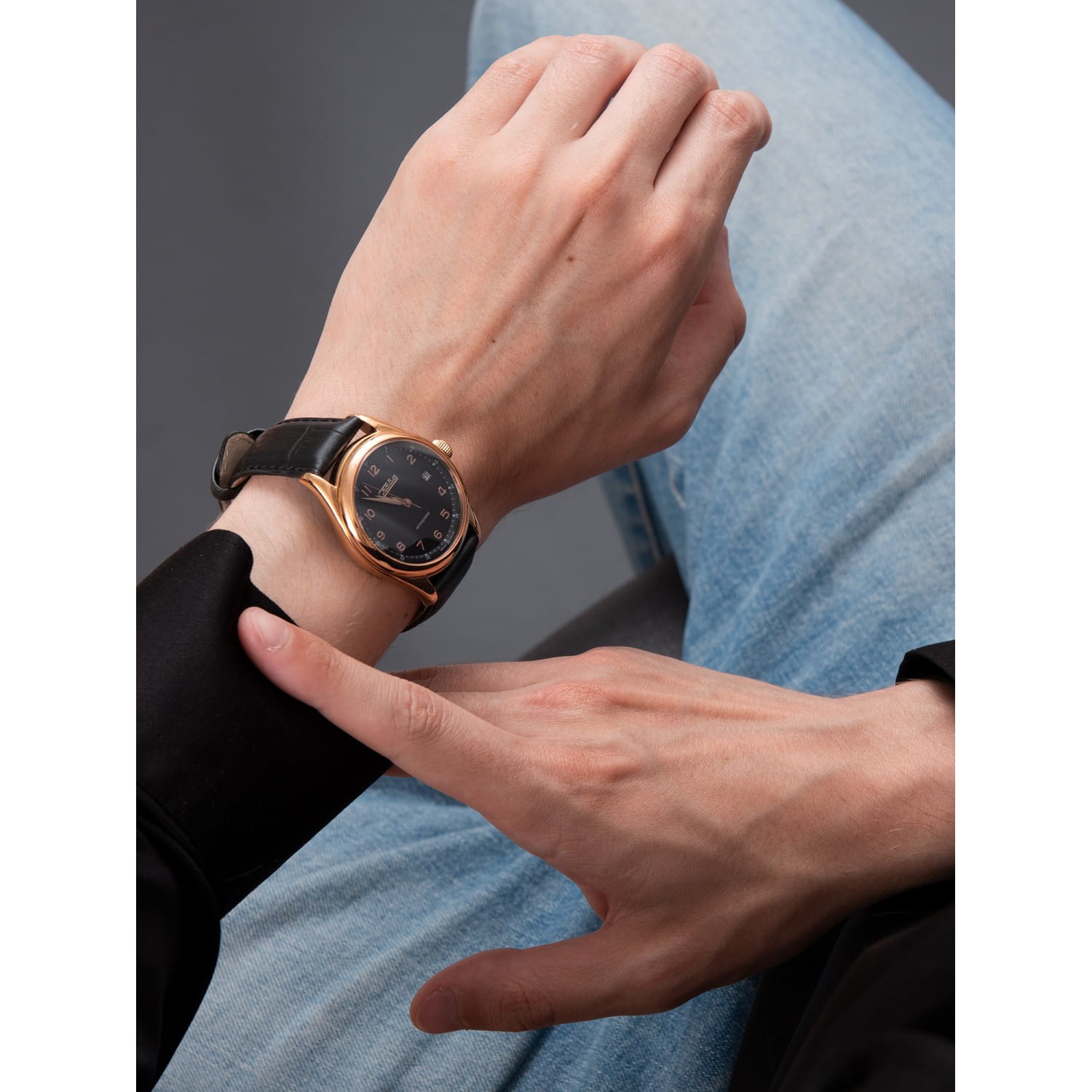 Российские механические часы с автоподзаводом Слава Премьер 1493274/300-8215. Корпус часов выполнен из стали с IP-покрытиемIP-покрытиеМетод ионного напыления. Демонстрирует повышенную устойчивость к истиранию, окислению и химическим веществам. Под воздействием высокого давления и температуры около 1500°C молекулы металла надёжно соединяются с частицами корпуса часов., что придает им долговечность и устойчивость к внешним воздействиям. Сапфировое стеклоСапфировое стеклоПрочный и надёжный материал из кристалла сапфира синтетического происхождения, характеризующийся особой твёрдостью и устойчивостью к царапинам и повреждениям.. Класс водозащиты часов составляет 50 метров, позволит защитить корпус от случайных брызг или капель дождя. Кожаный браслет с стандартной застежкой обеспечивает комфортное ношение и надежную фиксацию на запястье. Эти часы идеально подойдут для повседневного использования, сочетая в себе стиль, надежность и функциональность. Окошко даты находится в положении 3 часа.