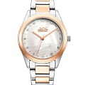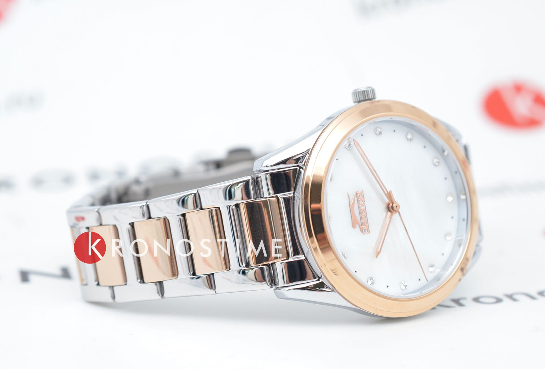 Женские наручные часы Slazenger SL.09.2013.3.05 из коллекции, сочетающей элегантность и практичность в классическом дизайне. Модель обладает круглым корпусом диаметром 35 мм, изготовленным из суперметалла. БезельБезельВнешний ободок, закрепляющий стекло. В спортивных часах так называется поворотное кольцо с делениями на циферблате, выполняет роль таймера – замеряет отрезки времени на шкале. Неподвижный безель – элемент декора. Однонаправленно вращающийся безель на дайверских часах позволяет фиксировать моменты погружения и выныривания на поверхность. с IP-покрытиемIP-покрытиеМетод ионного напыления. Демонстрирует повышенную устойчивость к истиранию, окислению и химическим веществам. Под воздействием высокого давления и температуры около 1500°C молекулы металла надёжно соединяются с частицами корпуса часов., что обеспечивает высокую устойчивость к внешним воздействиям. Циферблат украшен кристаллами в виде фианитов, добавляя модели особую роскошь и шарм. Для защиты используется минеральное стеклоМинеральное стеклоМинеральное стекло представляет собой искусственно выращенный минерал кварца. Такое стекло отличается особой устойчивостью к повреждениям и царапинам. Уступает по некоторым качествам сапфировому стеклу., обеспечивающее надежную защиту от царапин. Часы комплектуются браслетом из суперметалла с двухтоновым покрытием и раскладной застежкойРаскладной замокДанный вариант застежки используется только на часах с металлическим браслетом. Отличительная особенность такого крепления в том, что длина браслета становится универсальной и вы можете самостоятельно отрегулировать нужный вам размер – застежка просто двигается по браслету часов., гарантирующей комфортное ношение. Модель работает на кварцевом механизме, что обеспечивает высокую точность хода времени. Водонепроницаемость часов составляет 3 атмосферы (30 метров), подходящую для ежедневного использования, но не рекомендуется для плавания или дайвинга.
