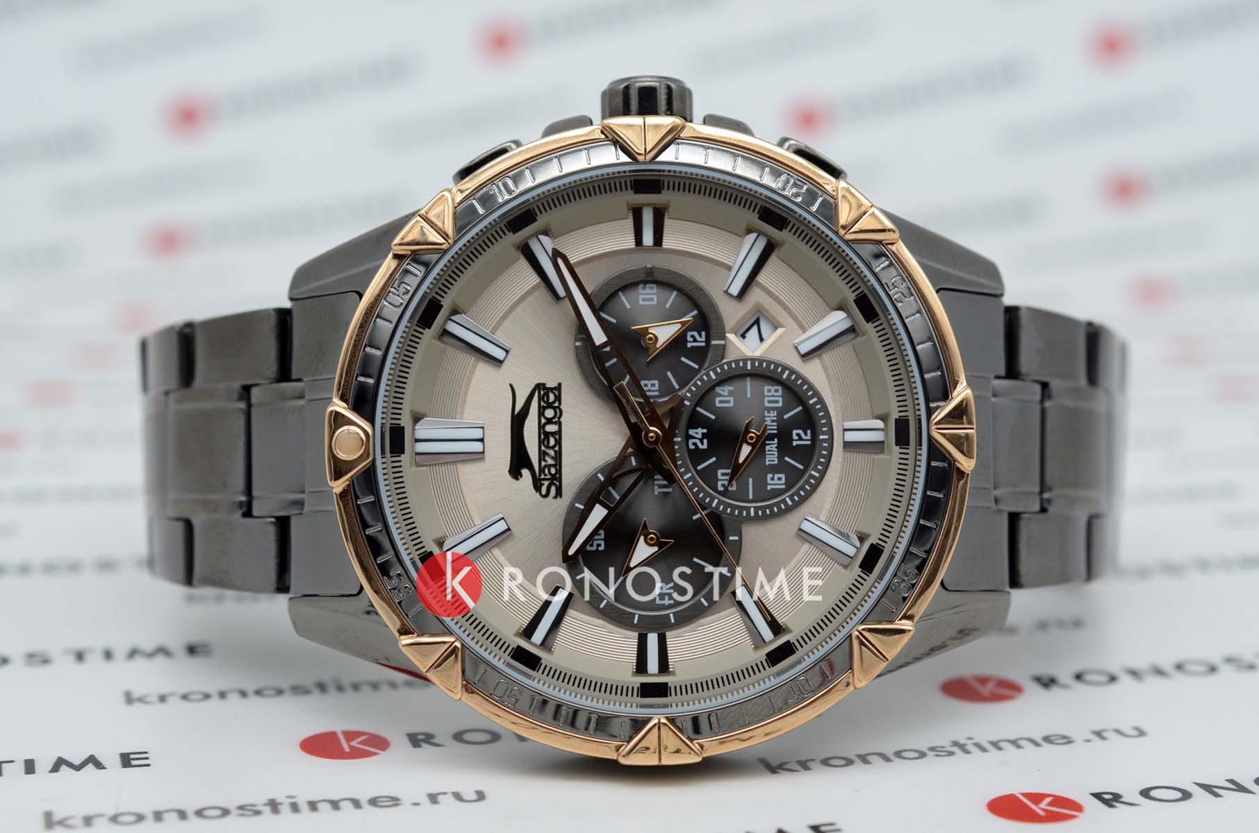 Мужские наручные часы Slazenger SL.09.2035.2.03 — это элегантный и функциональный аксессуар, сочетающий в себе классический дизайн и современные технологии. Модель обладает круглым корпусом диаметром 46 мм, выполненный из суперметалла и безельБезельВнешний ободок, закрепляющий стекло. В спортивных часах так называется поворотное кольцо с делениями на циферблате, выполняет роль таймера – замеряет отрезки времени на шкале. Неподвижный безель – элемент декора. Однонаправленно вращающийся безель на дайверских часах позволяет фиксировать моменты погружения и выныривания на поверхность. с IP-покрытиемIP-покрытиеМетод ионного напыления. Демонстрирует повышенную устойчивость к истиранию, окислению и химическим веществам. Под воздействием высокого давления и температуры около 1500°C молекулы металла надёжно соединяются с частицами корпуса часов., что обеспечивает устойчивость к царапинам и коррозии.