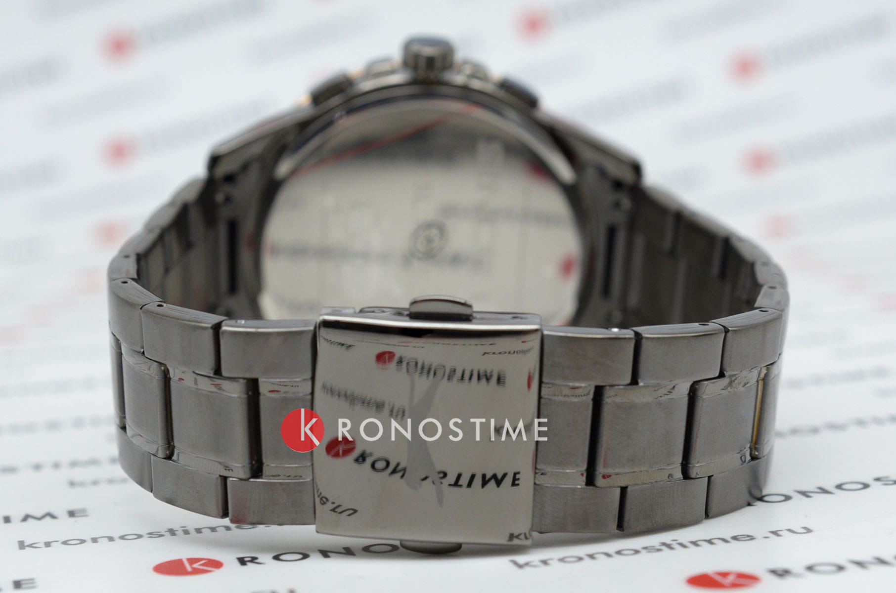 Циферблат серого цвета украшен стрелками с люминесцентным покрытиемЛюминесцентное покрытиеПозволяет считывать показания времени в темноте. Производители наносят на стрелки, часовые индексы, безель или поверхность циферблата светонакопительный состав, дающий холодное свечение., что обеспечивает читаемость времени даже в условиях слабого освещения. Для защиты циферблата используется минеральное стеклоМинеральное стеклоМинеральное стекло представляет собой искусственно выращенный минерал кварца. Такое стекло отличается особой устойчивостью к повреждениям и царапинам. Уступает по некоторым качествам сапфировому стеклу., устойчивое к царапинам и повреждениям. Браслет изготовлен из суперметалла с IP-покрытиемIP-покрытиеМетод ионного напыления. Демонстрирует повышенную устойчивость к истиранию, окислению и химическим веществам. Под воздействием высокого давления и температуры около 1500°C молекулы металла надёжно соединяются с частицами корпуса часов. на раскладной застежкойРаскладная застёжкаТакой тип застёжки используется только на браслетах из металла. Она никогда не раскрывается полностью, происходит разделение на 2 и более частей. Раскладывающая застёжка снизит вероятность потери часов к минимуму., гарантирующей удобство и надежность при ношении.
