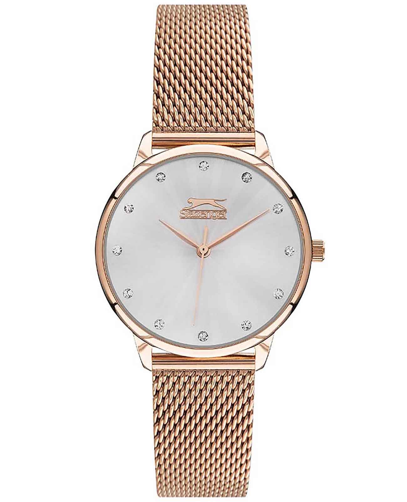Часы Slazenger SL.09.2052.3.01 — это воплощение элегантности и современного стиля, которые придутся по вкусу каждой женщине. Серебристый циферблат придает часам утонченный вид, гармонично сочетаясь с корпусом и безелемБезельВнешний ободок, закрепляющий стекло. В спортивных часах так называется поворотное кольцо с делениями на циферблате, выполняет роль таймера – замеряет отрезки времени на шкале. Неподвижный безель – элемент декора. Однонаправленно вращающийся безель на дайверских часах позволяет фиксировать моменты погружения и выныривания на поверхность. из суперметалла и IP-покрытиемIP-покрытиеМетод ионного напыления. Демонстрирует повышенную устойчивость к истиранию, окислению и химическим веществам. Под воздействием высокого давления и температуры около 1500°C молекулы металла надёжно соединяются с частицами корпуса часов.. Эти часы оснащены надежным кварцевым механизмом, который обеспечивает точность и долговечность. Водозащита уровня 3 ATM защитит от случайных брызг, а минеральное стеклоМинеральное стеклоМинеральное стекло представляет собой искусственно выращенный минерал кварца. Такое стекло отличается особой устойчивостью к повреждениям и царапинам. Уступает по некоторым качествам сапфировому стеклу. сохранит циферблат от царапин. Изюминкой дизайна являются фианиты, добавляющие блеск и изысканность. Золотой браслет с миланским плетением и IP-покрытиемIP-покрытиеМетод ионного напыления. Демонстрирует повышенную устойчивость к истиранию, окислению и химическим веществам. Под воздействием высокого давления и температуры около 1500°C молекулы металла надёжно соединяются с частицами корпуса часов., выполненный в цвете розового золота и оснащенный раскладным замкомРаскладной замокДанный вариант застежки используется только на часах с металлическим браслетом. Отличительная особенность такого крепления в том, что длина браслета становится универсальной и вы можете самостоятельно отрегулировать нужный вам размер – застежка просто двигается по браслету часов., обеспечивает комфорт и стильное прилегание к запястью. Диаметр корпуса составляет 34 мм, а толщина — 9 мм, что делает эти часы универсальным аксессуаром для любого наряда.
