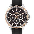 Мужские часы Slazenger SL.09.2090.2.04 представляют собой идеальное сочетание стиля и функциональности. Черный циферблат, обрамленный корпусом из суперметалла диаметром 46 мм и золотистым безелемБезельВнешний ободок, закрепляющий стекло. В спортивных часах так называется поворотное кольцо с делениями на циферблате, выполняет роль таймера – замеряет отрезки времени на шкале. Неподвижный безель – элемент декора. Однонаправленно вращающийся безель на дайверских часах позволяет фиксировать моменты погружения и выныривания на поверхность. также из суперметалла, но с IP-покрытиемIP-покрытиеМетод ионного напыления. Демонстрирует повышенную устойчивость к истиранию, окислению и химическим веществам. Под воздействием высокого давления и температуры около 1500°C молекулы металла надёжно соединяются с частицами корпуса часов., привлекает внимание своим современным дизайном. Кварцевый механизм обеспечивает точность хода. Силиконовый браслет черного цвета добавляет комфорта и надежности, идеально сочетаясь с цветом циферблата. Минеральное стеклоМинеральное стеклоМинеральное стекло представляет собой искусственно выращенный минерал кварца. Такое стекло отличается особой устойчивостью к повреждениям и царапинам. Уступает по некоторым качествам сапфировому стеклу. защищает часы от царапин, а люминесцентное покрытиеЛюминесцентное покрытиеПозволяет считывать показания времени в темноте. Производители наносят на стрелки, часовые индексы, безель или поверхность циферблата светонакопительный состав, дающий холодное свечение. на стрелках и метках обеспечивает видимость в темноте. Функциональность часов дополнена вторым часовым поясомВторой часовой поясФункция, позволяющая отображать время двух часовых поясов одновременно., 24-часовым указателем времени, календарем даты в районе отметки «4:30» и дня недели. А водозащита до 5 ATM позволяет использовать часы в различных условиях.