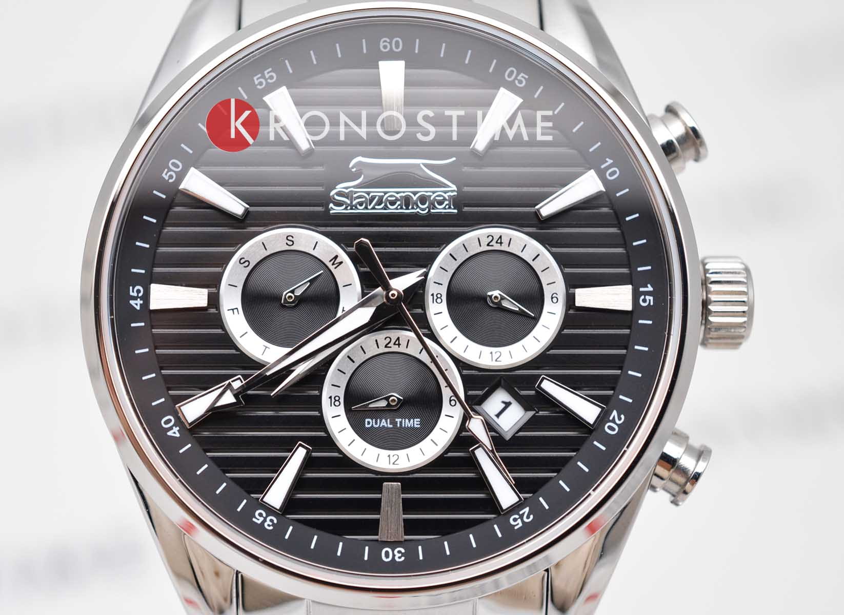 Мужские наручные часы Slazenger SL.09.2111.2.02 сочетают в себе классический дизайн и надежность современных технологий. Модель обладает круглым корпусом диаметром 44 мм, изготовленным из стали, что обеспечивает высокую устойчивость к внешним воздействиям. Браслет выполнен из металла с раскладной застежкойРаскладной замокДанный вариант застежки используется только на часах с металлическим браслетом. Отличительная особенность такого крепления в том, что длина браслета становится универсальной и вы можете самостоятельно отрегулировать нужный вам размер – застежка просто двигается по браслету часов., гарантирующей комфортное ношение и безопасность. Циферблат черного цвета декорирован стрелками с люминесцентным покрытиемЛюминесцентное покрытиеПозволяет считывать показания времени в темноте. Производители наносят на стрелки, часовые индексы, безель или поверхность циферблата светонакопительный состав, дающий холодное свечение., которые обеспечивают читаемость времени даже в условиях недостаточной освещенности. Для защиты используется минеральное стеклоМинеральное стеклоМинеральное стекло представляет собой искусственно выращенный минерал кварца. Такое стекло отличается особой устойчивостью к повреждениям и царапинам. Уступает по некоторым качествам сапфировому стеклу., обеспечивающее прочную защиту от царапин. Часы работают на кварцевом механизме, что гарантирует точное время без необходимости подзаводки. Модель также оснащена дополнительными функциями, такими как второй часовой поясВторой часовой поясФункция, позволяющая отображать время двух часовых поясов одновременно., отображение дня недели и текущего времени в 24-часовом формате, делая ее практичной для повседневного использования и путешествий. Водонепроницаемость часов достигает 5 атмосфер (WR50), что позволяет использовать их во время плавания, однако они не предназначены для дайвинга или других водных видов спорта. Толщина модели составляет 12 мм, а производитель предоставляет гарантию сроком 12 месяцев.