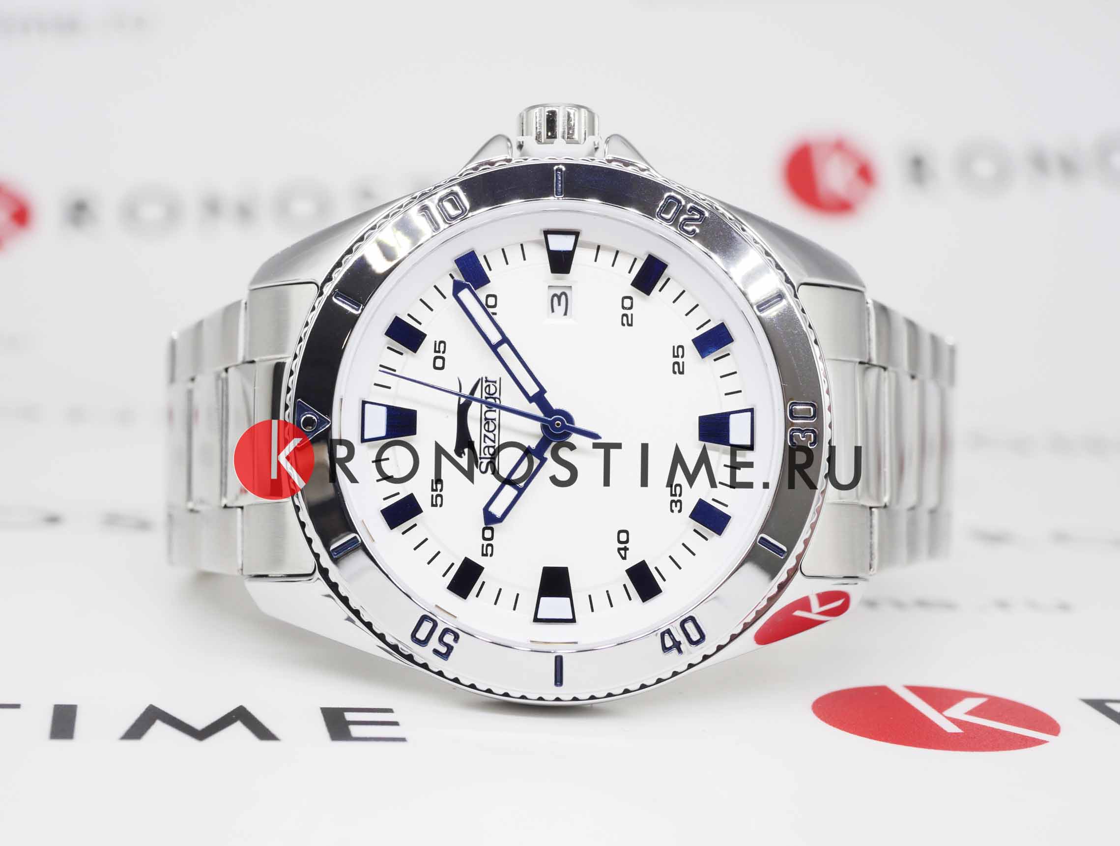 Мужские наручные часы Slazenger SL.09.2114.2.01 сочетают в себе классический дизайн и надежность современных технологий. Модель обладает круглым корпусом диаметром 44 мм, изготовленным из нержавеющей стали, что обеспечивает высокую устойчивость к внешним воздействиям. Браслет выполнен из металла с раскладной застежкойРаскладной замокДанный вариант застежки используется только на часах с металлическим браслетом. Отличительная особенность такого крепления в том, что длина браслета становится универсальной и вы можете самостоятельно отрегулировать нужный вам размер – застежка просто двигается по браслету часов., гарантирующей комфортное ношение и безопасность. Циферблат серебристого цвета декорирован стрелками с люминесцентным покрытиемЛюминесцентное покрытиеПозволяет считывать показания времени в темноте. Производители наносят на стрелки, часовые индексы, безель или поверхность циферблата светонакопительный состав, дающий холодное свечение., которые обеспечивают читаемость времени даже в условиях недостаточной освещенности. Для защиты используется минеральное стеклоМинеральное стеклоМинеральное стекло представляет собой искусственно выращенный минерал кварца. Такое стекло отличается особой устойчивостью к повреждениям и царапинам. Уступает по некоторым качествам сапфировому стеклу., обеспечивающее прочную защиту от царапин. Вращающийся стальной безельБезельВнешний ободок, закрепляющий стекло. В спортивных часах так называется поворотное кольцо с делениями на циферблате, выполняет роль таймера – замеряет отрезки времени на шкале. Неподвижный безель – элемент декора. Однонаправленно вращающийся безель на дайверских часах позволяет фиксировать моменты погружения и выныривания на поверхность.. Часы работают на кварцевом механизме, что гарантирует точное время без необходимости подзаводки. Водонепроницаемость часов достигает 5 атмосфер (WR50), что позволяет использовать их во время плавания, однако они не предназначены для дайвинга или других водных видов спорта. Толщина модели составляет 12 мм.