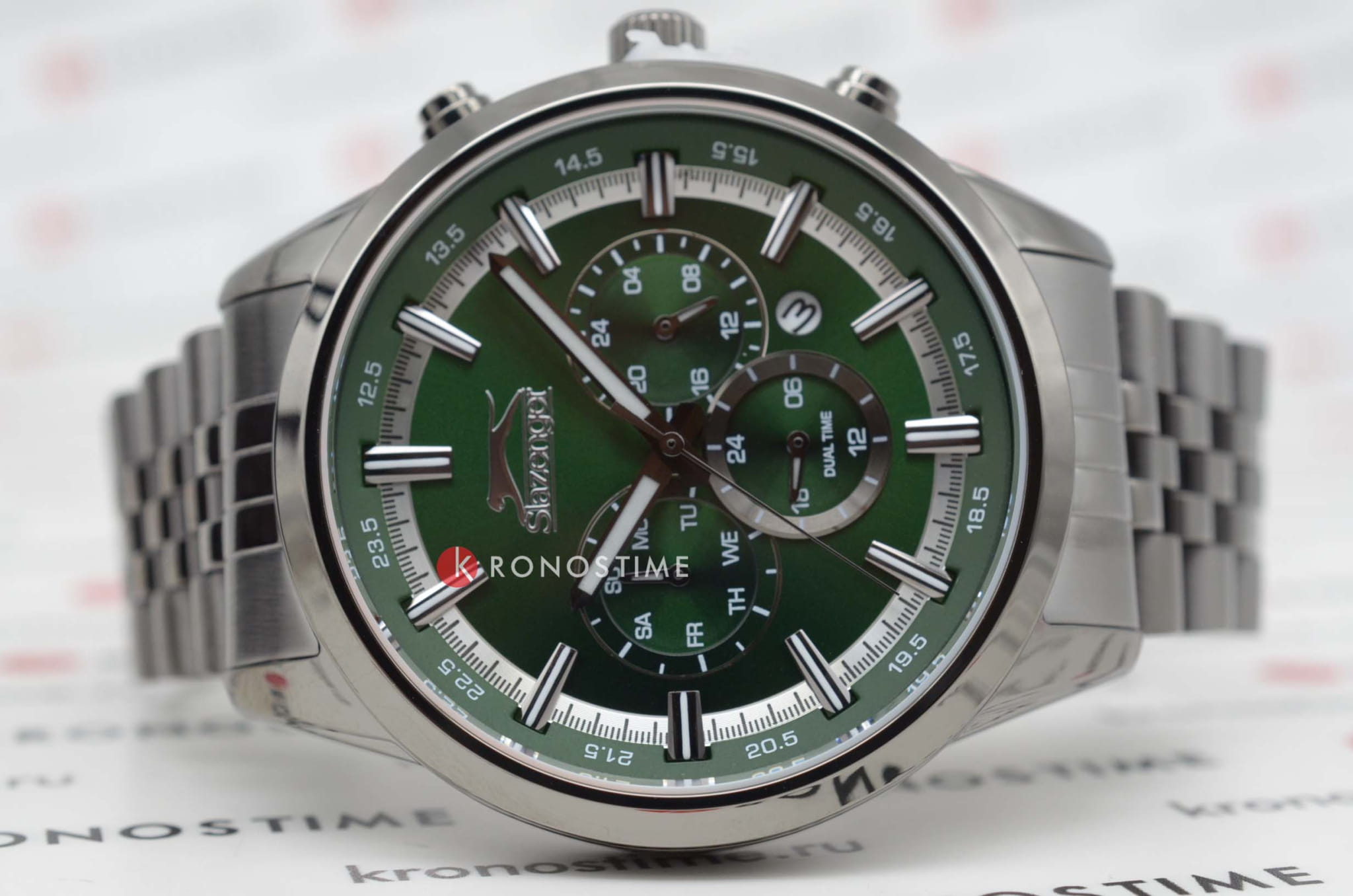 Часы Slazenger SL.09.2131.2.04 воплощают в себе элегантность и практичность, идеально подходящие для современных мужчин. Их зеленый циферблат, защищенный минеральным стекломМинеральное стеклоМинеральное стекло представляет собой искусственно выращенный минерал кварца. Такое стекло отличается особой устойчивостью к повреждениям и царапинам. Уступает по некоторым качествам сапфировому стеклу., заключен в черный матовый корпус диаметром 46 мм, который изготовлен из прочного суперметалла с IP-покрытиемIP-покрытиеМетод ионного напыления. Демонстрирует повышенную устойчивость к истиранию, окислению и химическим веществам. Под воздействием высокого давления и температуры около 1500°C молекулы металла надёжно соединяются с частицами корпуса часов.. Часы оснащены двойным форматом времени (12 и 24 часа), вторым часовым поясом и удобным окошком даты. Надежный кварцевый механизм обеспечивает точность, а водозащита 5 ATM делает их устойчивыми к воздействию воды. Стальной браслет из суперметалла с черным IP-покрытиемIP-покрытиеМетод ионного напыления. Демонстрирует повышенную устойчивость к истиранию, окислению и химическим веществам. Под воздействием высокого давления и температуры около 1500°C молекулы металла надёжно соединяются с частицами корпуса часов. имеет раскладную застёжкуРаскладная застёжкаТакой тип застёжки используется только на браслетах из металла. Она никогда не раскрывается полностью, происходит разделение на 2 и более частей. Раскладывающая застёжка снизит вероятность потери часов к минимуму., что подчеркивает современный стиль и позволяет легко снимать часы. Часы оснащены 24-часовым указателем времени, а также функциями отображения даты и дня недели. Люминесцентное покрытиеЛюминесцентное покрытиеПозволяет считывать показания времени в темноте. Производители наносят на стрелки, часовые индексы, безель или поверхность циферблата светонакопительный состав, дающий холодное свечение. на стрелках и метках обеспечивает отличную видимость в темноте.