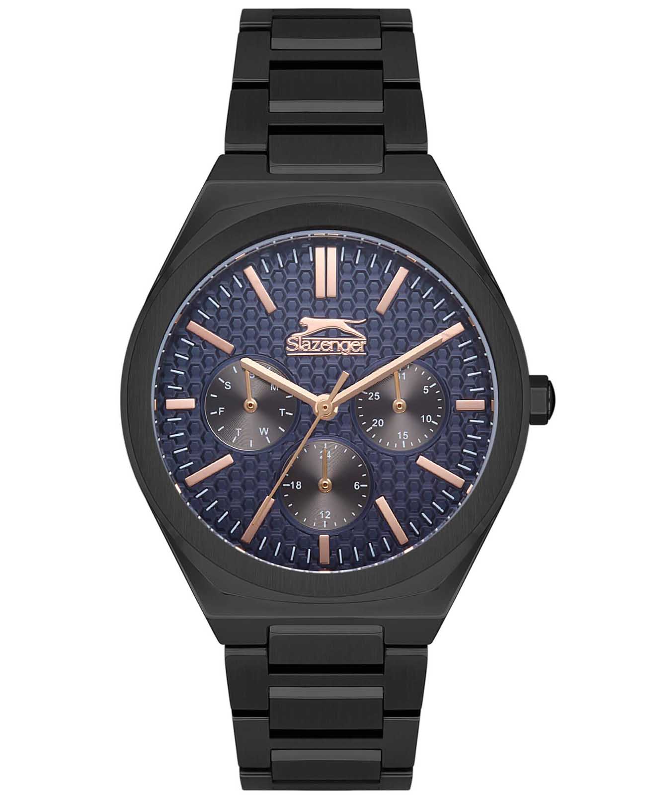 Элегантные женские часы Slazenger SL.09.2138.4.03 воплощают в себе утонченный стиль и функциональность. Их изящный круглый корпус из суперметалла с черным IP-покрытиемIP-покрытиеМетод ионного напыления. Демонстрирует повышенную устойчивость к истиранию, окислению и химическим веществам. Под воздействием высокого давления и температуры около 1500°C молекулы металла надёжно соединяются с частицами корпуса часов. гармонично сочетается с изысканным синим циферблатом и золотистыми стрелками, создавая неповторимый образ. Минималистичный дизайн подчеркивает чистоту линий и внимание к деталям. Циферблат защищен минеральным стекломМинеральное стеклоМинеральное стекло представляет собой искусственно выращенный минерал кварца. Такое стекло отличается особой устойчивостью к повреждениям и царапинам. Уступает по некоторым качествам сапфировому стеклу., устойчивым к царапинам. Часы имеют надежный кварцевый механизм, обеспечивающий точность хода. Часы оснащены 24-часовым указателем времени, а также дней недели и даты - на дополнительных малых циферблатах. Черный браслет из суперметалла IP-покрытиемIP-покрытиеМетод ионного напыления. Демонстрирует повышенную устойчивость к истиранию, окислению и химическим веществам. Под воздействием высокого давления и температуры около 1500°C молекулы металла надёжно соединяются с частицами корпуса часов. идеально облегает запястье. Модель прекрасно дополнит как деловой, так и повседневный образ, став незаменимым аксессуаром для современной женщины, ценящей качество и стиль.