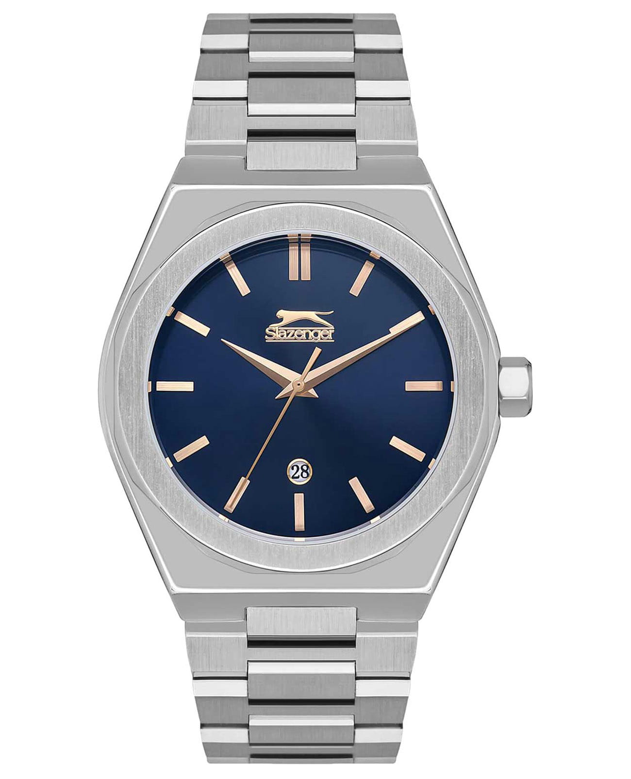 Мужские наручные часы Slazenger SL.09.2144.1.02 сочетают в себе классический дизайн и надежность современных технологий. Модель обладает круглым корпусом диаметром 44 мм, изготовленным из суперметалла, что обеспечивает высокую устойчивость к внешним воздействиям. Браслет выполнен из суперметалла с раскладной застежкойРаскладной замокДанный вариант застежки используется только на часах с металлическим браслетом. Отличительная особенность такого крепления в том, что длина браслета становится универсальной и вы можете самостоятельно отрегулировать нужный вам размер – застежка просто двигается по браслету часов., гарантирующей комфортное ношение и безопасность. Для защиты корпуса используется минеральное стеклоМинеральное стеклоМинеральное стекло представляет собой искусственно выращенный минерал кварца. Такое стекло отличается особой устойчивостью к повреждениям и царапинам. Уступает по некоторым качествам сапфировому стеклу., обеспечивающее прочную защиту от царапин. Часы работают на кварцевом механизме, что гарантирует точное время без необходимости подзаводки. Водонепроницаемость часов достигает 5 атмосфер (WR50), что позволяет использовать их во время плавания, однако они не предназначены для дайвинга или других водных видов спорта. Толщина модели составляет 11 мм. SL.09.2144.1.02 — это стильный аксессуар, который станет отличным дополнением как формального, так и casual образа мужчины.