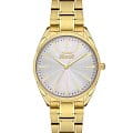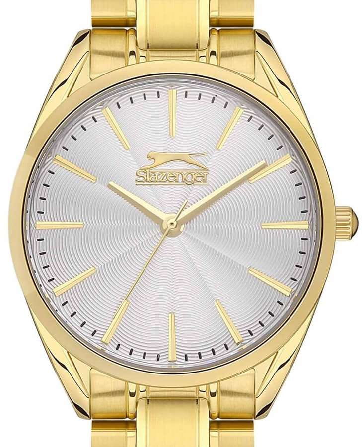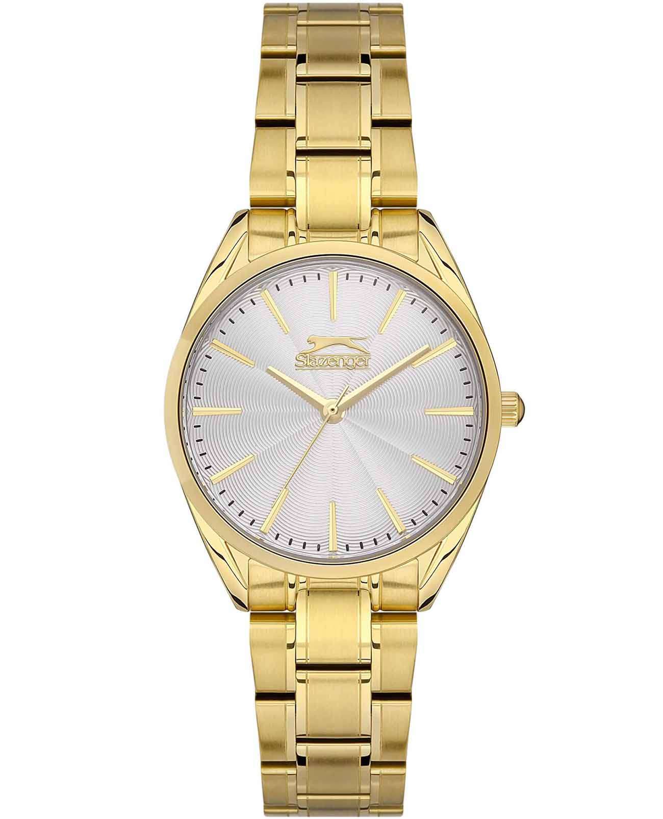 Эти стильные женские часы Slazenger SL.09.2155.3.05 идеально подчеркивают утонченный вкус своей обладательницы. Они оснащены надежным кварцевым механизмом, который обеспечивает точность хода. Корпус выполнен из качественного суперметалла с золотистым IP-покрытиемIP-покрытиеМетод ионного напыления. Демонстрирует повышенную устойчивость к истиранию, окислению и химическим веществам. Под воздействием высокого давления и температуры около 1500°C молекулы металла надёжно соединяются с частицами корпуса часов., что придаёт аксессуару современный вид и дополнительную прочность. Минеральное стеклоМинеральное стеклоМинеральное стекло представляет собой искусственно выращенный минерал кварца. Такое стекло отличается особой устойчивостью к повреждениям и царапинам. Уступает по некоторым качествам сапфировому стеклу. надежно защищает циферблат от возможных повреждений. Серебристый циферблат выполнен по технологии Sunray, что создает эффект солнечных лучей и придает часам особую изысканность. Металлический браслет с золотистым IP-покрытиемIP-покрытиеМетод ионного напыления. Демонстрирует повышенную устойчивость к истиранию, окислению и химическим веществам. Под воздействием высокого давления и температуры около 1500°C молекулы металла надёжно соединяются с частицами корпуса часов. и с раскладной застёжкойРаскладная застёжкаТакой тип застёжки используется только на браслетах из металла. Она никогда не раскрывается полностью, происходит разделение на 2 и более частей. Раскладывающая застёжка снизит вероятность потери часов к минимуму. обеспечивает комфортное и надежное прилегание к запястью. Диаметр корпуса составляет 32 мм, а толщина — всего 9 мм, что придаёт часам изящность и элегантность. Водозащита уровня WR 30 позволяет не беспокоиться о небольших брызгах, которые могут возникнуть в повседневной жизни. Вес часов составляет 78 грамм, что делает их легкими и удобными для ежедневного ношения. Эти часы станут идеальным аксессуаром, подчеркивающим стиль и индивидуальность современной женщины.