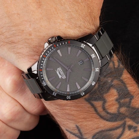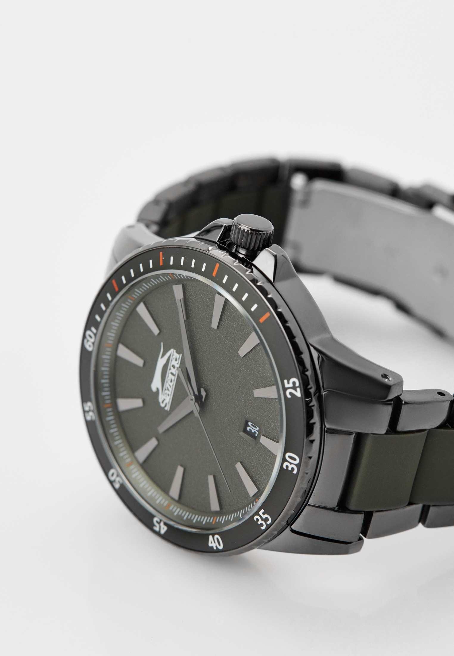 Часы Slazenger SL.09.2219.1.02 представляют собой стильное и функциональное аксессуарное решение для современных мужчин. Этот английский бренд предлагает кварцевый механизм, обеспечивающий точность хода и надежность в использовании. Корпус из металла с черным IP-покрытиемIP-покрытиеМетод ионного напыления. Демонстрирует повышенную устойчивость к истиранию, окислению и химическим веществам. Под воздействием высокого давления и температуры около 1500°C молекулы металла надёжно соединяются с частицами корпуса часов. и минеральное стеклоМинеральное стеклоМинеральное стекло представляет собой искусственно выращенный минерал кварца. Такое стекло отличается особой устойчивостью к повреждениям и царапинам. Уступает по некоторым качествам сапфировому стеклу. придают часам прочность и износостойкость, а водозащита уровня WR 30 позволяет не беспокоиться о случайных брызгах и дождевых каплях. БезельБезельВнешний ободок, закрепляющий стекло. В спортивных часах так называется поворотное кольцо с делениями на циферблате, выполняет роль таймера – замеряет отрезки времени на шкале. Неподвижный безель – элемент декора. Однонаправленно вращающийся безель на дайверских часах позволяет фиксировать моменты погружения и выныривания на поверхность. с черным IP-покрытиемIP-покрытиеМетод ионного напыления. Демонстрирует повышенную устойчивость к истиранию, окислению и химическим веществам. Под воздействием высокого давления и температуры около 1500°C молекулы металла надёжно соединяются с частицами корпуса часов. придаёт аксессуару современный вид и дополнительную прочность. Металлический браслет с черным IP-покрытиемIP-покрытиеМетод ионного напыления. Демонстрирует повышенную устойчивость к истиранию, окислению и химическим веществам. Под воздействием высокого давления и температуры около 1500°C молекулы металла надёжно соединяются с частицами корпуса часов., с комбинированными элементами и черными силиконовыми вставками обеспечивает комфортное ношение и надежную фиксацию на запястье, а раскладная застёжкаРаскладная застёжкаТакой тип застёжки используется только на браслетах из металла. Она никогда не раскрывается полностью, происходит разделение на 2 и более частей. Раскладывающая застёжка снизит вероятность потери часов к минимуму. облегчает процесс надевания. Диаметр корпуса составляет 45 мм, а толщина — 12 мм, что делает модель выразительной и заметной на руке, при этом она сохраняет элегантность и изысканность. На черном циферблате присутствует окошко даты, что добавляет практичности в повседневное использование. Заводная головка оснащена защитой, обеспечивая дополнительную долговечность. Вес часов составляет 148 грамм, что делает их достаточно легкими для комфортного ношения в течение всего дня.