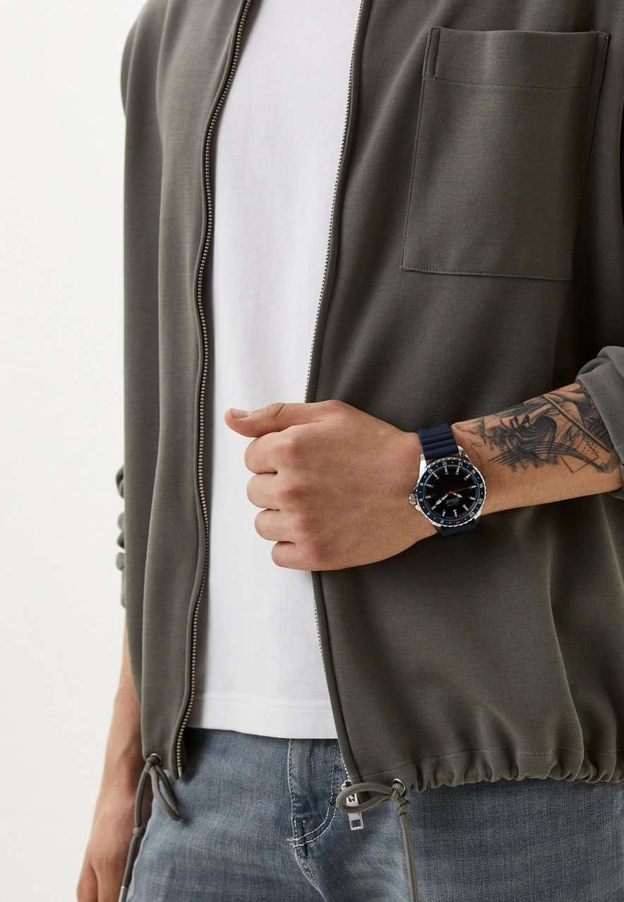 Часы Slazenger SL.09.2224.1.03 — это надежные и стильные наручные часы, созданные в Англии и оснащённые высокоточным кварцевым механизмом. Корпус выполнен из металла и гармонично сочетается с синим резиновым ремешком шириной 22 мм, который обеспечивает удобную посадку и фиксируется классической застежкой. Минеральное стеклоМинеральное стеклоМинеральное стекло представляет собой искусственно выращенный минерал кварца. Такое стекло отличается особой устойчивостью к повреждениям и царапинам. Уступает по некоторым качествам сапфировому стеклу. защищает циферблат от царапин, а благодаря водозащите класса WR 50 часы не боятся брызг и дождя. БезельБезельВнешний ободок, закрепляющий стекло. В спортивных часах так называется поворотное кольцо с делениями на циферблате, выполняет роль таймера – замеряет отрезки времени на шкале. Неподвижный безель – элемент декора. Однонаправленно вращающийся безель на дайверских часах позволяет фиксировать моменты погружения и выныривания на поверхность. с синим IP-покрытиемIP-покрытиеМетод ионного напыления. Демонстрирует повышенную устойчивость к истиранию, окислению и химическим веществам. Под воздействием высокого давления и температуры около 1500°C молекулы металла надёжно соединяются с частицами корпуса часов. придает часам дополнительную прочность и устойчивость к износу. Модель отличается крупным корпусом диаметром 45 мм и толщиной 12 мм, вес изделия — 80 грамм. Стрелки и метки снабжены люминесцентным покрытиемЛюминесцентное покрытиеПозволяет считывать показания времени в темноте. Производители наносят на стрелки, часовые индексы, безель или поверхность циферблата светонакопительный состав, дающий холодное свечение., что позволяет легко считывать время в темноте, а также есть окошко даты и защищённая заводная головка. Эта модель станет отличным выбором для тех, кто ценит функциональность, надежность и современный дизайн.