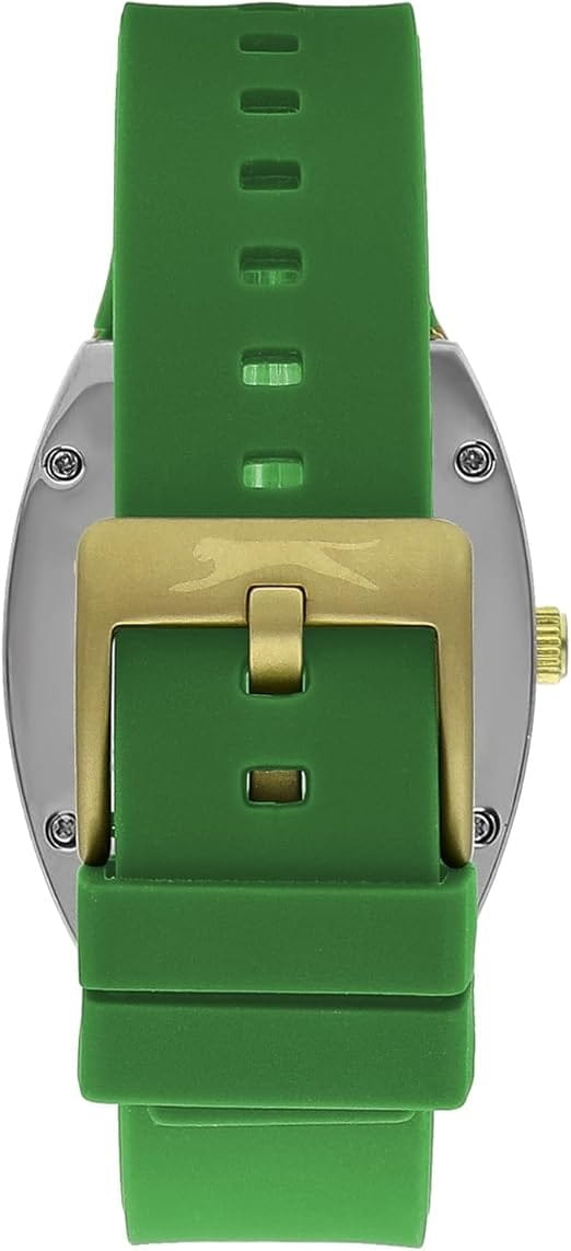 Часы Slazenger SL.09.2226.3.02 — это стильное сочетание современного дизайна и практичности. Модель оснащена надёжным кварцевым механизмом, благодаря чему отличается высокой точностью хода. Корпус часов выполнен из металла с IP-покрытиемIP-покрытиеМетод ионного напыления. Демонстрирует повышенную устойчивость к истиранию, окислению и химическим веществам. Под воздействием высокого давления и температуры около 1500°C молекулы металла надёжно соединяются с частицами корпуса часов. в оригинальной бочкообразной форме, задняя крышка закреплена на винтах для дополнительной прочности. Минеральное стеклоМинеральное стеклоМинеральное стекло представляет собой искусственно выращенный минерал кварца. Такое стекло отличается особой устойчивостью к повреждениям и царапинам. Уступает по некоторым качествам сапфировому стеклу. защищает циферблат от царапин, а водозащита уровня WR 30 позволяет не беспокоиться о попадании брызг. Особое внимание привлекает ремешок зелёного цвета из прочной резины с классической застёжкой, который обеспечивает комфортное ношение в течение всего дня. Стрелки и метки снабжены люминесцентным покрытиемЛюминесцентное покрытиеПозволяет считывать показания времени в темноте. Производители наносят на стрелки, часовые индексы, безель или поверхность циферблата светонакопительный состав, дающий холодное свечение., что позволяет легко считывать время в темноте. Размеры корпуса составляют 34 мм в ширину, 45 мм в высоту и 13 мм в толщину, а общий вес изделия — 68 грамм. Эти часы станут отличным выбором для тех, кто ценит оригинальный стиль и надёжность.
