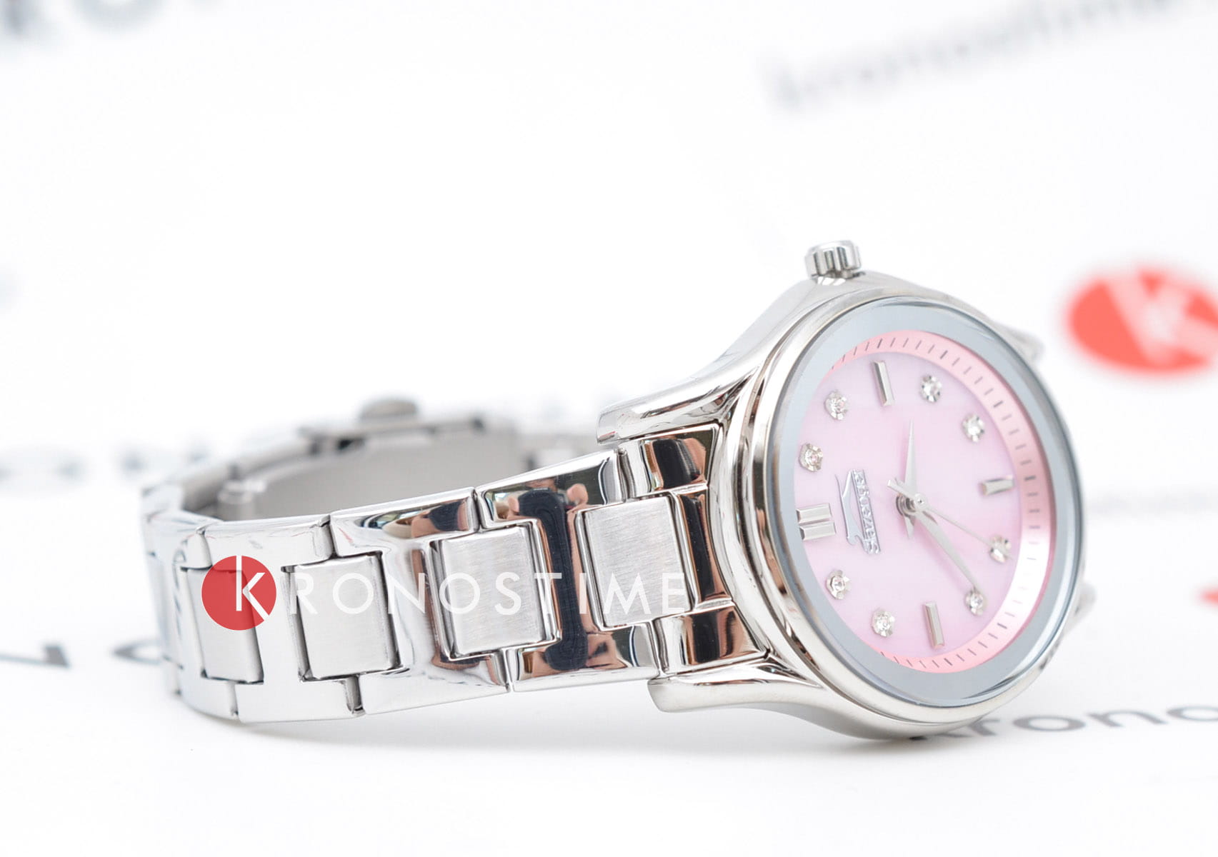 Женские наручные часы Slazenger SL.09.2235.3.08 сочетают в себе классический дизайн и надежность современных технологий. Модель обладает круглым корпусом диаметром 32 мм, изготовленным из прочного металла, что обеспечивает высокую устойчивость к внешним воздействиям. Индексы украшены фианитами. Браслет выполнен из металла с раскладной застёжкойРаскладная застёжкаТакой тип застёжки используется только на браслетах из металла. Она никогда не раскрывается полностью, происходит разделение на 2 и более частей. Раскладывающая застёжка снизит вероятность потери часов к минимуму., гарантирующей комфортное ношение и безопасность. Циферблат перламутрового розового цвета декорирован серебристыми стрелками и индексами. Для защиты используется минеральное стеклоМинеральное стеклоМинеральное стекло представляет собой искусственно выращенный минерал кварца. Такое стекло отличается особой устойчивостью к повреждениям и царапинам. Уступает по некоторым качествам сапфировому стеклу., обеспечивающее прочную защиту от царапин. Часы работают на кварцевом механизме, что гарантирует точное время без необходимости подзаводки. Водонепроницаемость часов достигает 3 атмосфер, что позволяет использовать их при мытье рук или хождении под мелким дождем, однако не рекомендуется для плавания или других водных видов спорта. Вес модели составляет 72 грамма.