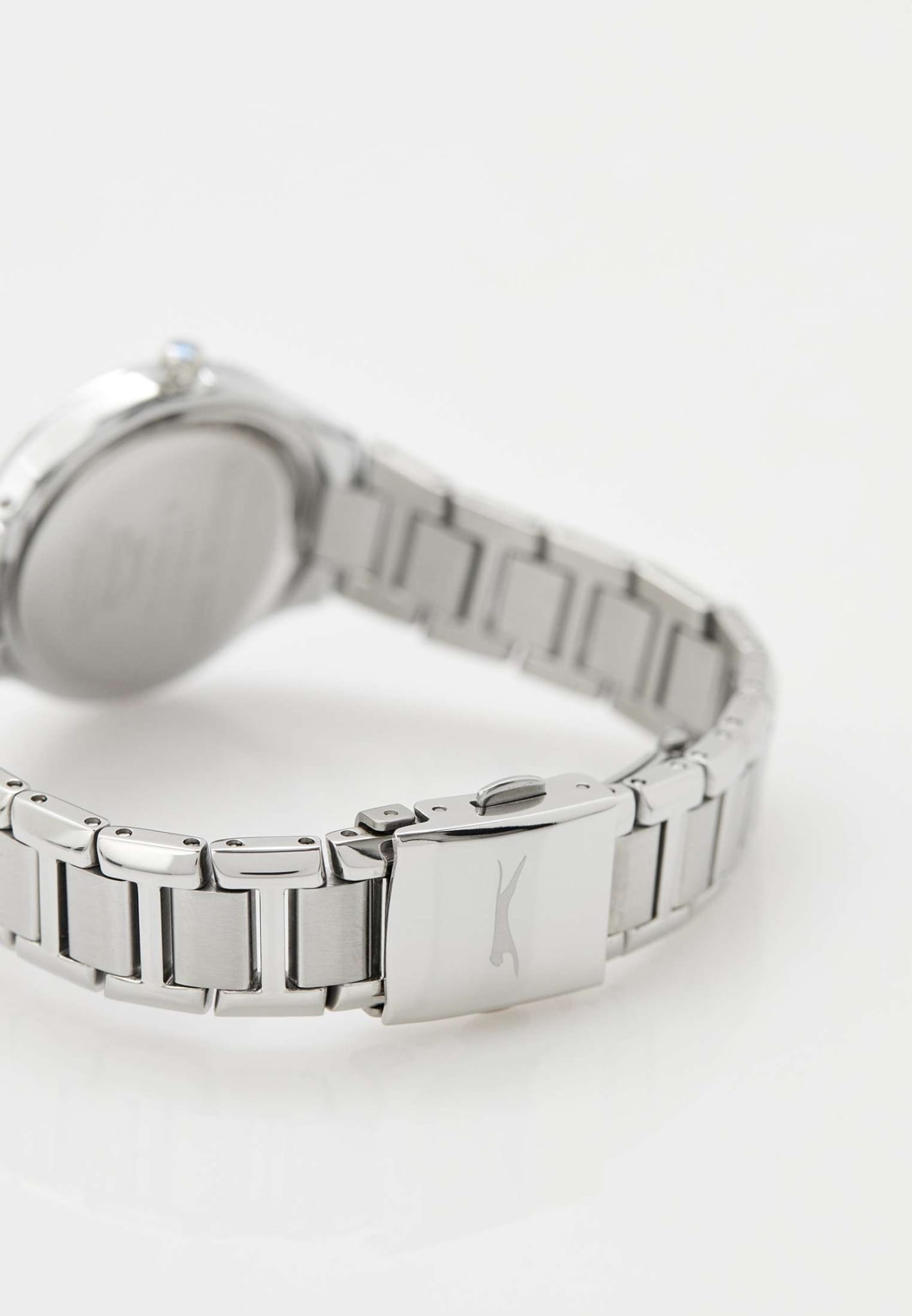 Часы Slazenger SL.09.2254.3.01 — это стильный и надежный аксессуар, который подчеркнет ваш индивидуальный образ. Корпус и браслет выполнены из инновационного суперметалла — сплава на основе меди с пониженным содержанием цинка и никеля, обладающего особой прочностью и долговечностью благодаря специальной технологии покрытия. Модель оснащена точным кварцевым механизмом, который обеспечивает стабильную работу и не требует ежедневного завода. Под прочным минеральным стекломМинеральное стеклоМинеральное стекло представляет собой искусственно выращенный минерал кварца. Такое стекло отличается особой устойчивостью к повреждениям и царапинам. Уступает по некоторым качествам сапфировому стеклу. расположен лаконичный черный циферблат, придающий часам элегантный и современный вид. Стальной браслет с раскладной застёжкойРаскладная застёжкаТакой тип застёжки используется только на браслетах из металла. Она никогда не раскрывается полностью, происходит разделение на 2 и более частей. Раскладывающая застёжка снизит вероятность потери часов к минимуму. обеспечивает комфортную посадку. Диаметр корпуса составляет 32 мм, толщина — 8 мм, что делает часы аккуратными и удобными для повседневного ношения. Класс водозащиты 3 атмосферы защищает механизм от случайных брызг и капель дождя.