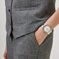 Часы Slazenger SL.09.2258.3.03 — это изысканный аксессуар, который гармонично подчеркнёт ваш индивидуальный стиль. Корпус и браслет выполнены из инновационного суперметалла — сплава на основе меди с пониженным содержанием цинка и никеля, обладающего специальным защитным покрытием, а циферблат украшен 4 кристаллами. Надёжный кварцевый механизм обеспечивает точный ход, а прочное минеральное стеклоМинеральное стеклоМинеральное стекло представляет собой искусственно выращенный минерал кварца. Такое стекло отличается особой устойчивостью к повреждениям и царапинам. Уступает по некоторым качествам сапфировому стеклу. устойчиво к царапинам и защищает перламутровый циферблат от внешних воздействий. Диаметр корпуса составляет 38 мм, толщина — всего 8 мм, что делает модель элегантной и удобной для ежедневного ношения. Водонепроницаемость до 3 бар позволяет не беспокоиться о случайных брызгах или каплях дождя. Стрелки с люминесцентным покрытиемЛюминесцентное покрытиеПозволяет считывать показания времени в темноте. Производители наносят на стрелки, часовые индексы, безель или поверхность циферблата светонакопительный состав, дающий холодное свечение. удобно подсвечиваются в темноте после зарядки на свету. Стальной браслет с частичным золотистым IP-покрытиемIP-покрытиеМетод ионного напыления. Демонстрирует повышенную устойчивость к истиранию, окислению и химическим веществам. Под воздействием высокого давления и температуры около 1500°C молекулы металла надёжно соединяются с частицами корпуса часов. и раскладной застёжкойРаскладная застёжкаТакой тип застёжки используется только на браслетах из металла. Она никогда не раскрывается полностью, происходит разделение на 2 и более частей. Раскладывающая застёжка снизит вероятность потери часов к минимуму. обеспечивает комфортную посадку. Часы станут отличным выбором как для повседневной жизни, так и для особых случаев, а также послужат прекрасным подарком на любой праздник.