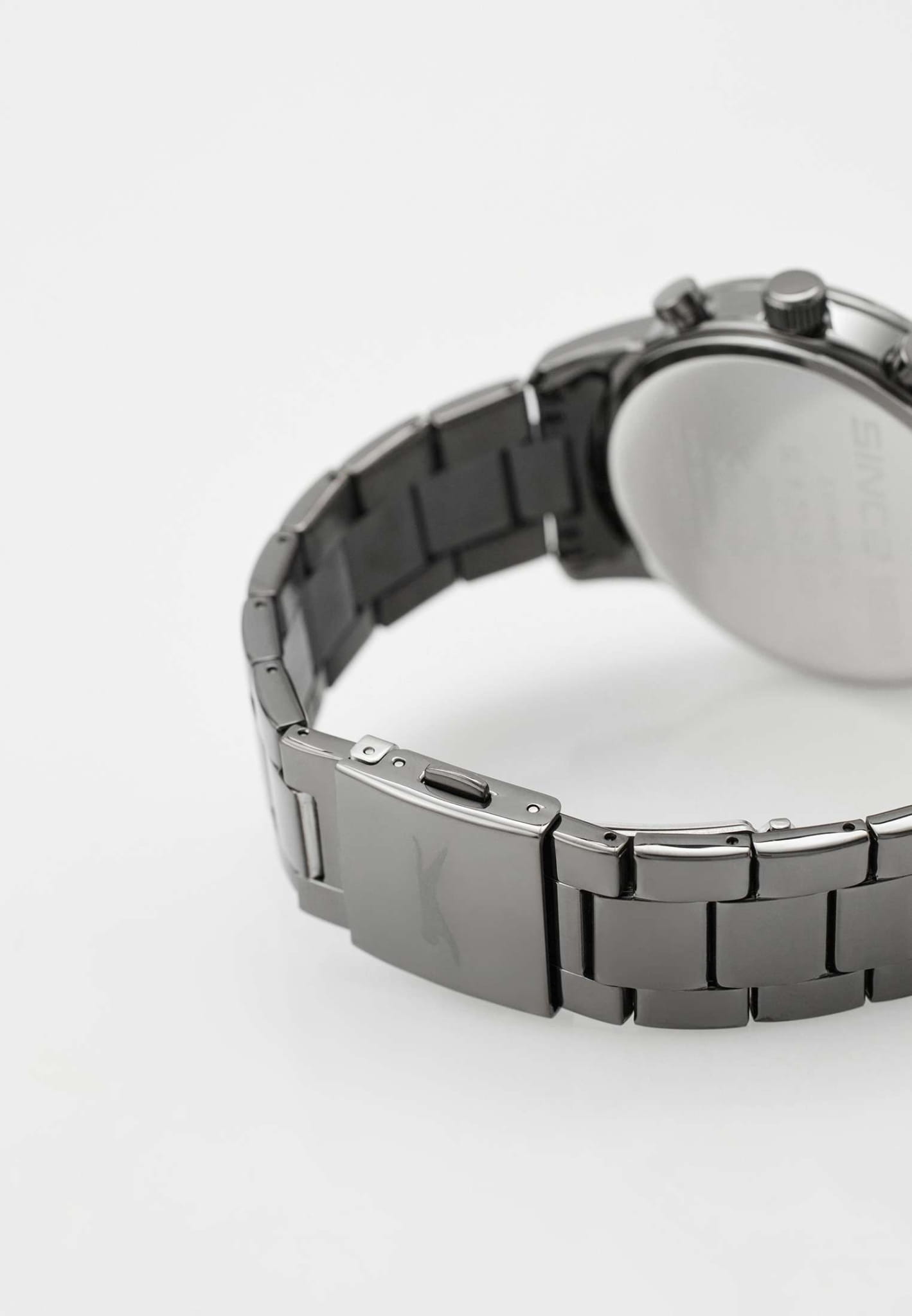 Часы Slazenger SL.09.2260.2.02 сочетают в себе выразительный дизайн и практичность, делая их отличным выбором для современного мужчины. Корпус и браслет выполнены из суперметалла с черным IP-покрытиеIP-покрытиеМетод ионного напыления. Демонстрирует повышенную устойчивость к истиранию, окислению и химическим веществам. Под воздействием высокого давления и температуры около 1500°C молекулы металла надёжно соединяются с частицами корпуса часов. — прочного сплава на основе меди с низким содержанием цинка и никеля, что обеспечивает долговечность изделия. На безельБезельВнешний ободок, закрепляющий стекло. В спортивных часах так называется поворотное кольцо с делениями на циферблате, выполняет роль таймера – замеряет отрезки времени на шкале. Неподвижный безель – элемент декора. Однонаправленно вращающийся безель на дайверских часах позволяет фиксировать моменты погружения и выныривания на поверхность. нанесено зеленое IP-покрытиеIP-покрытиеМетод ионного напыления. Демонстрирует повышенную устойчивость к истиранию, окислению и химическим веществам. Под воздействием высокого давления и температуры около 1500°C молекулы металла надёжно соединяются с частицами корпуса часов., что придает аксессуару утончённый и универсальный внешний вид. Модель оснащена точным кварцевым механизмом, защищённым минеральным стекломМинеральное стеклоМинеральное стекло представляет собой искусственно выращенный минерал кварца. Такое стекло отличается особой устойчивостью к повреждениям и царапинам. Уступает по некоторым качествам сапфировому стеклу.. На зеленом циферблате размещены дополнительные индикаторы: 24-часовой формат времени, дата и день недели. Класс водозащиты 5 бар позволяет не беспокоиться о брызгах и дожде. Диаметр корпуса составляет 45 мм, толщина — 12 мм, что придаёт часам солидный и современный вид. Стрелки с люминесцентным покрытиемЛюминесцентное покрытиеПозволяет считывать показания времени в темноте. Производители наносят на стрелки, часовые индексы, безель или поверхность циферблата светонакопительный состав, дающий холодное свечение. удобно подсвечиваются в темноте после зарядки на свету. Стальной браслет с раскладной застёжкойРаскладная застёжкаТакой тип застёжки используется только на браслетах из металла. Она никогда не раскрывается полностью, происходит разделение на 2 и более частей. Раскладывающая застёжка снизит вероятность потери часов к минимуму. обеспечивает комфортную посадку. Модель станет надёжным спутником как на каждый день, так и для особых случаев, а также превосходно подойдёт в качестве подарка.