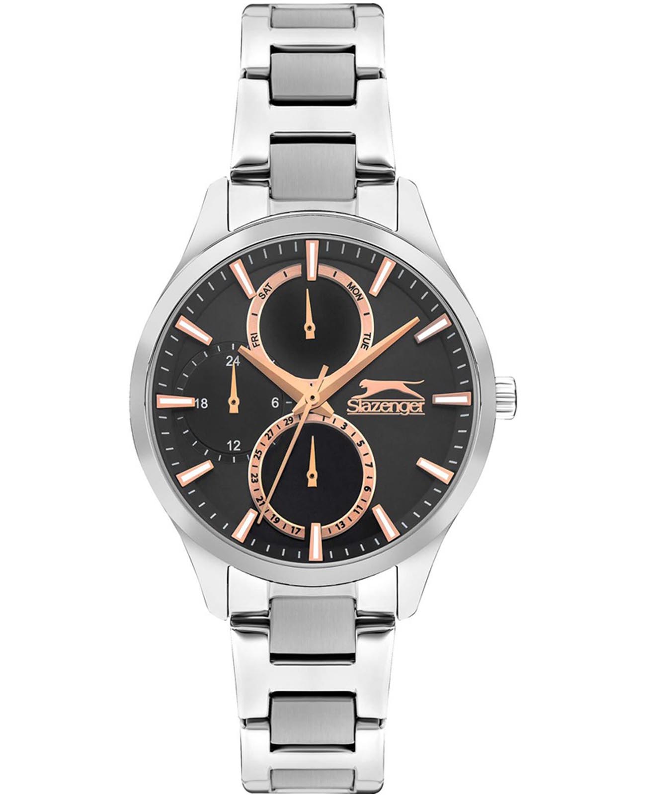 Часы Slazenger SL.09.2284.4.02 — это изящный и функциональный аксессуар, который гармонично дополнит ваш образ и подчеркнет индивидуальность. Корпус и браслет выполнены из инновационного суперметалла — сплава на основе меди с пониженным содержанием цинка и никеля, что обеспечивает долговечность и надежную защиту от внешних воздействий. Черный циферблат, защищенный прочным минеральным стекломМинеральное стеклоМинеральное стекло представляет собой искусственно выращенный минерал кварца. Такое стекло отличается особой устойчивостью к повреждениям и царапинам. Уступает по некоторым качествам сапфировому стеклу., оснащен дополнительными индикаторами: отдельные циферблаты отображают 24-часовой формат времени, текущую дату и день недели, что делает использование часов максимально удобным в повседневной жизни. Диаметр корпуса составляет 35 мм, а толщина — 11 мм, благодаря чему модель комфортно располагается на запястье. Браслет с раскладной застёжкойРаскладная застёжкаТакой тип застёжки используется только на браслетах из металла. Она никогда не раскрывается полностью, происходит разделение на 2 и более частей. Раскладывающая застёжка снизит вероятность потери часов к минимуму. обеспечивает комфортную посадку. Метки с люминесцентным покрытиемЛюминесцентное покрытиеПозволяет считывать показания времени в темноте. Производители наносят на стрелки, часовые индексы, безель или поверхность циферблата светонакопительный состав, дающий холодное свечение. удобно подсвечиваются в темноте после зарядки на свету. Класс водонепроницаемости 3 атм защищает механизм от случайных брызг и капель дождя. Кварцевый механизм гарантирует точность хода и простоту эксплуатации.