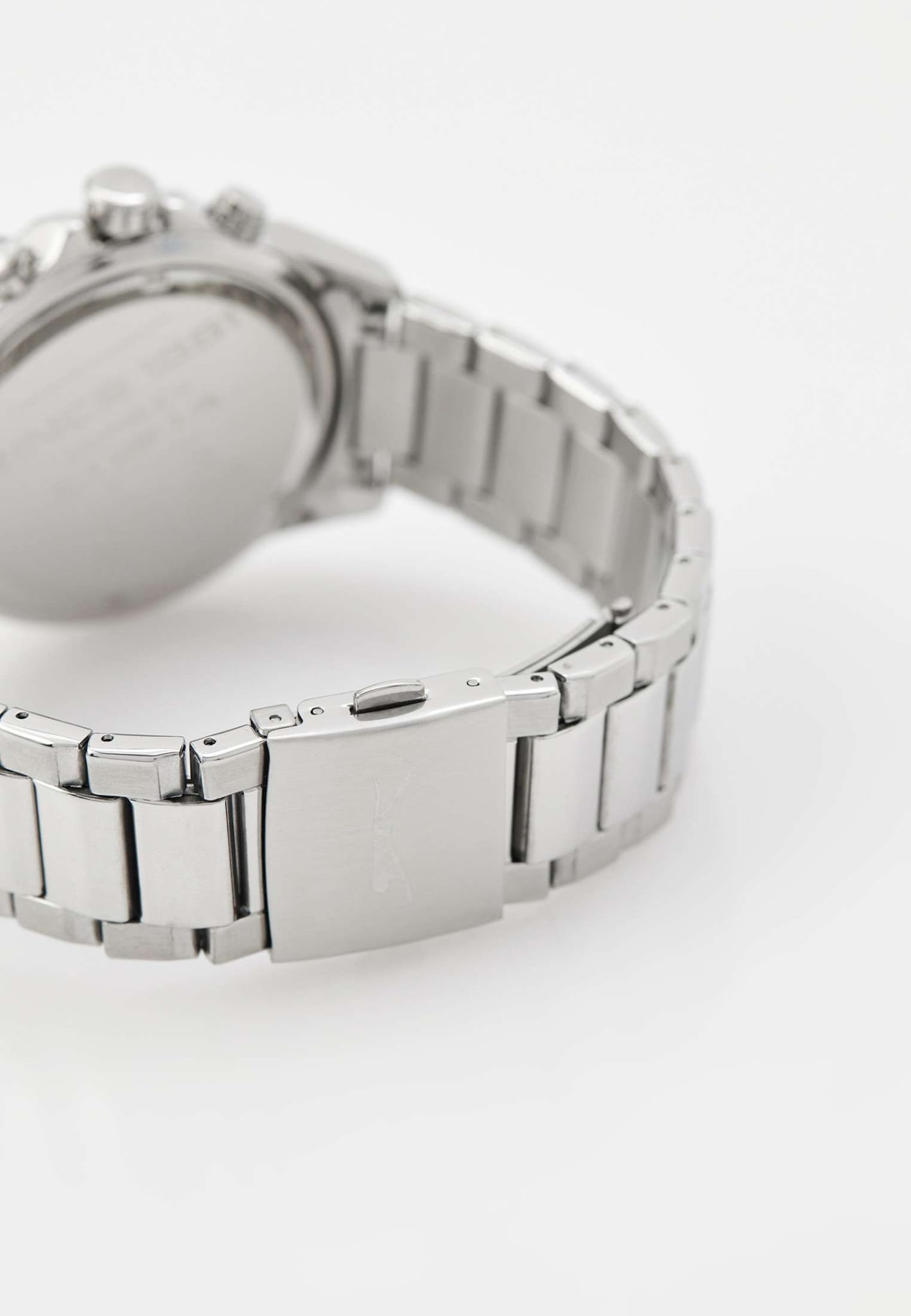 Часы Slazenger SL.09.2289.2.06 — это сочетание современного дизайна и функциональности, идеально подходящее для тех, кто ценит стиль и надежность. Корпус и браслет выполнены из прочного суперметалла, что придаёт модели солидный и эффектный вид. Синий циферблат с лаконичными отметками и фирменным логотипом защищён устойчивым к царапинам минеральным стекломМинеральное стеклоМинеральное стекло представляет собой искусственно выращенный минерал кварца. Такое стекло отличается особой устойчивостью к повреждениям и царапинам. Уступает по некоторым качествам сапфировому стеклу.. Дополнительные функции включают отображение даты и дня недели, а также 12- и 24-часовой формат времени на отдельных мини-циферблатах, что делает использование часов максимально удобным. Заводная головка оснащена защитой, а надёжная раскладная застёжкаРаскладная застёжкаТакой тип застёжки используется только на браслетах из металла. Она никогда не раскрывается полностью, происходит разделение на 2 и более частей. Раскладывающая застёжка снизит вероятность потери часов к минимуму. обеспечивает комфортную посадку на запястье. Особое внимание привлекает восьмигранный безельБезельВнешний ободок, закрепляющий стекло. В спортивных часах так называется поворотное кольцо с делениями на циферблате, выполняет роль таймера – замеряет отрезки времени на шкале. Неподвижный безель – элемент декора. Однонаправленно вращающийся безель на дайверских часах позволяет фиксировать моменты погружения и выныривания на поверхность.. Циферблат оснащён люминесцентным покрытиемЛюминесцентное покрытиеПозволяет считывать показания времени в темноте. Производители наносят на стрелки, часовые индексы, безель или поверхность циферблата светонакопительный состав, дающий холодное свечение. стрелок и меток, что позволяет легко определять время даже в условиях плохой освещенности. Водозащита 50WR позволяет не беспокоиться о случайных брызгах и дождевых каплях. Диаметр корпуса составляет 46 мм, толщина — 14 мм, вес — 165 г, благодаря чему часы выглядят внушительно и подчёркивают индивидуальный стиль владельца. Эта модель станет отличным акцентом в вашем образе и подчеркнёт вашу уверенность в любой ситуации.