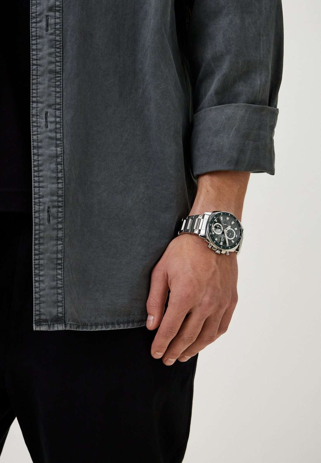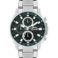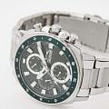 Slazenger SL.09.2292.2.03 — это стильные наручные часы, выполненные в современном дизайне и отлично подходящие для повседневного использования. Корпус диаметром 45 мм изготовлен из прочного металла и дополнен минеральным стекломМинеральное стеклоМинеральное стекло представляет собой искусственно выращенный минерал кварца. Такое стекло отличается особой устойчивостью к повреждениям и царапинам. Уступает по некоторым качествам сапфировому стеклу., которое защищает зеленый циферблат. Серебристый металлический браслет шириной 24 мм оснащён надежной раскладной застёжкойРаскладная застёжкаТакой тип застёжки используется только на браслетах из металла. Она никогда не раскрывается полностью, происходит разделение на 2 и более частей. Раскладывающая застёжка снизит вероятность потери часов к минимуму., которая обеспечивает комфортную посадку на руке. Кварцевый механизм гарантирует точный ход, а водозащита уровня WR 50 позволяет не снимать часы во время мытья рук или под дождём. Модель оснащена люминесцентным покрытиемЛюминесцентное покрытиеПозволяет считывать показания времени в темноте. Производители наносят на стрелки, часовые индексы, безель или поверхность циферблата светонакопительный состав, дающий холодное свечение. стрелок и меток, что облегчает считывание времени в темноте. Дополнительные малые циферблаты отображают дату, день недели и текущее время в 24-часовом формате. Часы также оснащены заводной головкой с защитой и безелемБезельВнешний ободок, закрепляющий стекло. В спортивных часах так называется поворотное кольцо с делениями на циферблате, выполняет роль таймера – замеряет отрезки времени на шкале. Неподвижный безель – элемент декора. Однонаправленно вращающийся безель на дайверских часах позволяет фиксировать моменты погружения и выныривания на поверхность. с зеленым IP-покрытиемIP-покрытиеМетод ионного напыления. Демонстрирует повышенную устойчивость к истиранию, окислению и химическим веществам. Под воздействием высокого давления и температуры около 1500°C молекулы металла надёжно соединяются с частицами корпуса часов. и секундной разметкой. Вес изделия составляет 173 грамма.