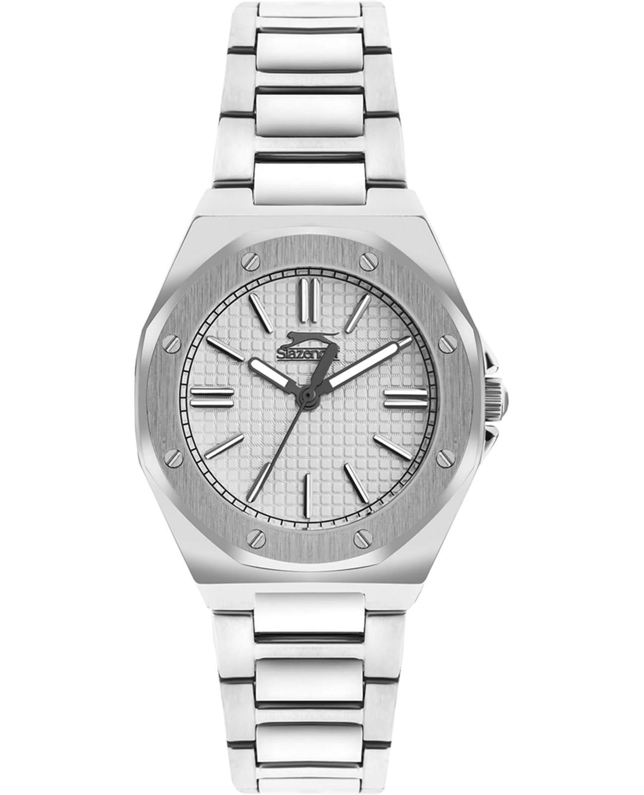Женские кварцевые часы Slazenger SL.09.2306.3.04 — это элегантный и стильный аксессуар, идеально дополняющий любой образ. Корпус и браслет выполнены из суперметалла, защищён минеральным стекломМинеральное стеклоМинеральное стекло представляет собой искусственно выращенный минерал кварца. Такое стекло отличается особой устойчивостью к повреждениям и царапинам. Уступает по некоторым качествам сапфировому стеклу.. Циферблат белого цвета оформлен в классическом стиле, стрелки оснащены люминесцентным покрытиемЛюминесцентное покрытиеПозволяет считывать показания времени в темноте. Производители наносят на стрелки, часовые индексы, безель или поверхность циферблата светонакопительный состав, дающий холодное свечение., обеспечивающим хорошую читаемость в темноте. Заводная головка снабжена защитой для повышения надёжности. Браслет из суперметалла фиксируется на раскладной застёжкеРаскладная застёжкаТакой тип застёжки используется только на браслетах из металла. Она никогда не раскрывается полностью, происходит разделение на 2 и более частей. Раскладывающая застёжка снизит вероятность потери часов к минимуму., обеспечивая удобство и безопасность ношения. Водонепроницаемость 30 м позволяет использовать часы в повседневных условиях, защищая от случайных брызг и капель дождя. Модель сочетает в себе лёгкость, прочность и изысканный внешний вид.