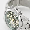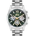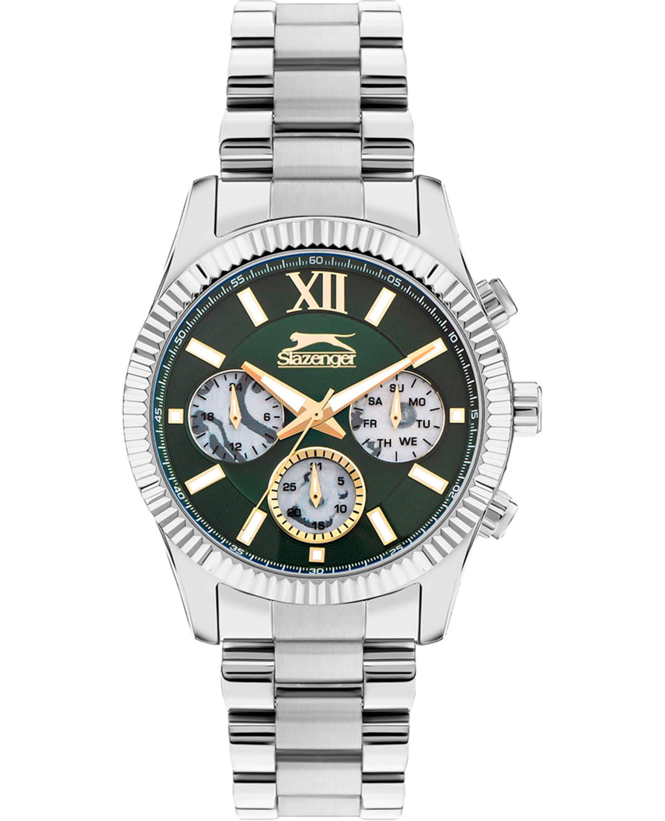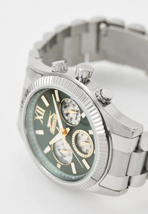 Мужские кварцевые часы Slazenger SL.09.2316.2.03 - это выразительный и функциональный аксессуар, сочетающий прочность, стиль и насыщенную комплектацию. Корпус и браслет выполнены из суперметалла. Циферблат зелёного цвета защищён минеральным стекломМинеральное стеклоМинеральное стекло представляет собой искусственно выращенный минерал кварца. Такое стекло отличается особой устойчивостью к повреждениям и царапинам. Уступает по некоторым качествам сапфировому стеклу. и оформлен с вынесенными малыми циферблатами для индикации дня недели, даты и времени в 24-часовом формате. Стрелки и метки оснащены люминесцентным покрытиемЛюминесцентное покрытиеПозволяет считывать показания времени в темноте. Производители наносят на стрелки, часовые индексы, безель или поверхность циферблата светонакопительный состав, дающий холодное свечение., обеспечивающим хорошую читаемость в темноте. Завинчивающаяся задняя крышка повышает надёжность конструкции. Браслет из суперметалла фиксируется на раскладной застёжкеРаскладная застёжкаТакой тип застёжки используется только на браслетах из металла. Она никогда не раскрывается полностью, происходит разделение на 2 и более частей. Раскладывающая застёжка снизит вероятность потери часов к минимуму., обеспечивая удобство и безопасность ношения. Водонепроницаемость 50 м позволяет использовать часы в повседневных условиях, защищая от случайных брызг и капель дождя. Модель подчёркивает индивидуальность владельца и идеально подходит как для повседневного, так и для делового образа.