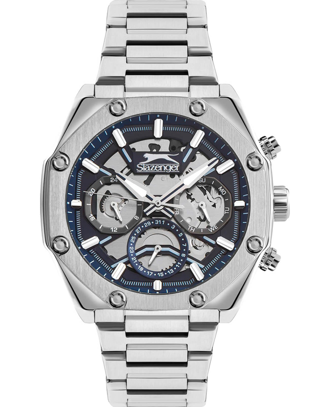 Мужские кварцевые часы Slazenger SL.09.2318.2.04 - это выразительный и функциональный аксессуар, сочетающий стиль, технологичность и насыщенную комплектацию. Корпус и браслет выполнены из суперметалла. Циферблат защищён минеральным стекломМинеральное стеклоМинеральное стекло представляет собой искусственно выращенный минерал кварца. Такое стекло отличается особой устойчивостью к повреждениям и царапинам. Уступает по некоторым качествам сапфировому стеклу. и частично скелетонизирован, что позволяет наблюдать за работой механизма, и дополнен вынесенными малыми циферблатами для индикации дня недели, даты и времени в 24-часовом формате. Стрелки и метки оснащены люминесцентным покрытиемЛюминесцентное покрытиеПозволяет считывать показания времени в темноте. Производители наносят на стрелки, часовые индексы, безель или поверхность циферблата светонакопительный состав, дающий холодное свечение., обеспечивающим хорошую читаемость в темноте. Браслет из суперметалла фиксируется на раскладной застёжкеРаскладная застёжкаТакой тип застёжки используется только на браслетах из металла. Она никогда не раскрывается полностью, происходит разделение на 2 и более частей. Раскладывающая застёжка снизит вероятность потери часов к минимуму., обеспечивая удобство и надёжность ношения. Водонепроницаемость 50 м позволяет использовать часы в повседневных условиях, защищая от случайных брызг и капель дождя. Модель подчёркивает индивидуальность владельца и идеально подходит как для повседневного, так и для делового образа.