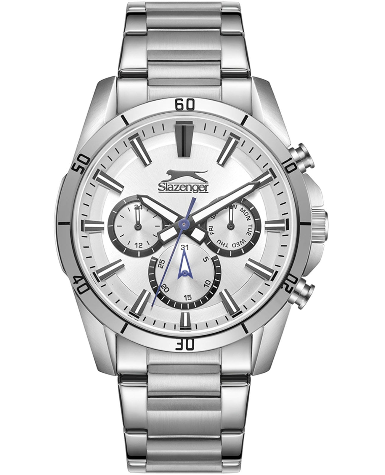 Мужские кварцевые часы Slazenger SL.09.2332.2.01 — это выразительный и функциональный аксессуар, сочетающий стиль, прочность и насыщенную комплектацию. Корпус и браслет выполнены из суперметалла. Изысканный циферблат защищён минеральным стекломМинеральное стеклоМинеральное стекло представляет собой искусственно выращенный минерал кварца. Такое стекло отличается особой устойчивостью к повреждениям и царапинам. Уступает по некоторым качествам сапфировому стеклу. и дополнен вынесенными малыми циферблатами для индикации дня недели, даты и времени в 24-часовом формате. Стрелки и метки оснащены люминесцентным покрытиемЛюминесцентное покрытиеПозволяет считывать показания времени в темноте. Производители наносят на стрелки, часовые индексы, безель или поверхность циферблата светонакопительный состав, дающий холодное свечение., обеспечивающим хорошую читаемость в темноте. Браслет из суперметалла фиксируется на раскладной застёжкеРаскладная застёжкаТакой тип застёжки используется только на браслетах из металла. Она никогда не раскрывается полностью, происходит разделение на 2 и более частей. Раскладывающая застёжка снизит вероятность потери часов к минимуму., обеспечивая удобство и безопасность ношения. Водонепроницаемость 50 м позволяет использовать часы в повседневных условиях, защищая от случайных брызг и капель дождя. Модель подчёркивает индивидуальность владельца и идеально подходит как для повседневного, так и для делового образа.
